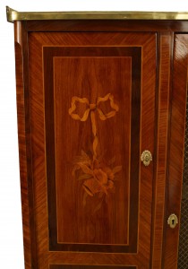 Style: French Materials & Techniques: Marble, veneer, wood, bronze, kingwood, inlaid Category: Cabinets & Case Goods