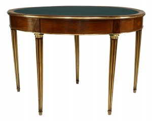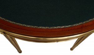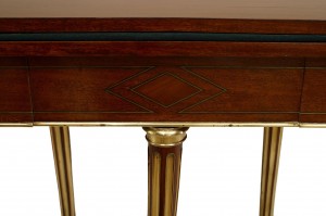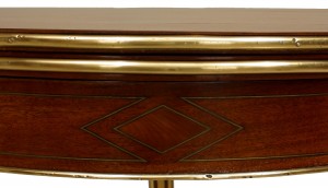 Style: French Materials & Techniques: Brass, inlaid, mahogany Category: Tables, Dining Room Condition: Antique condition Good; Wear consistent with age and use