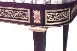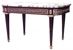 Style: French Materials & Techniques: Marble, bronze, mahogany, inlaid Category: Tables