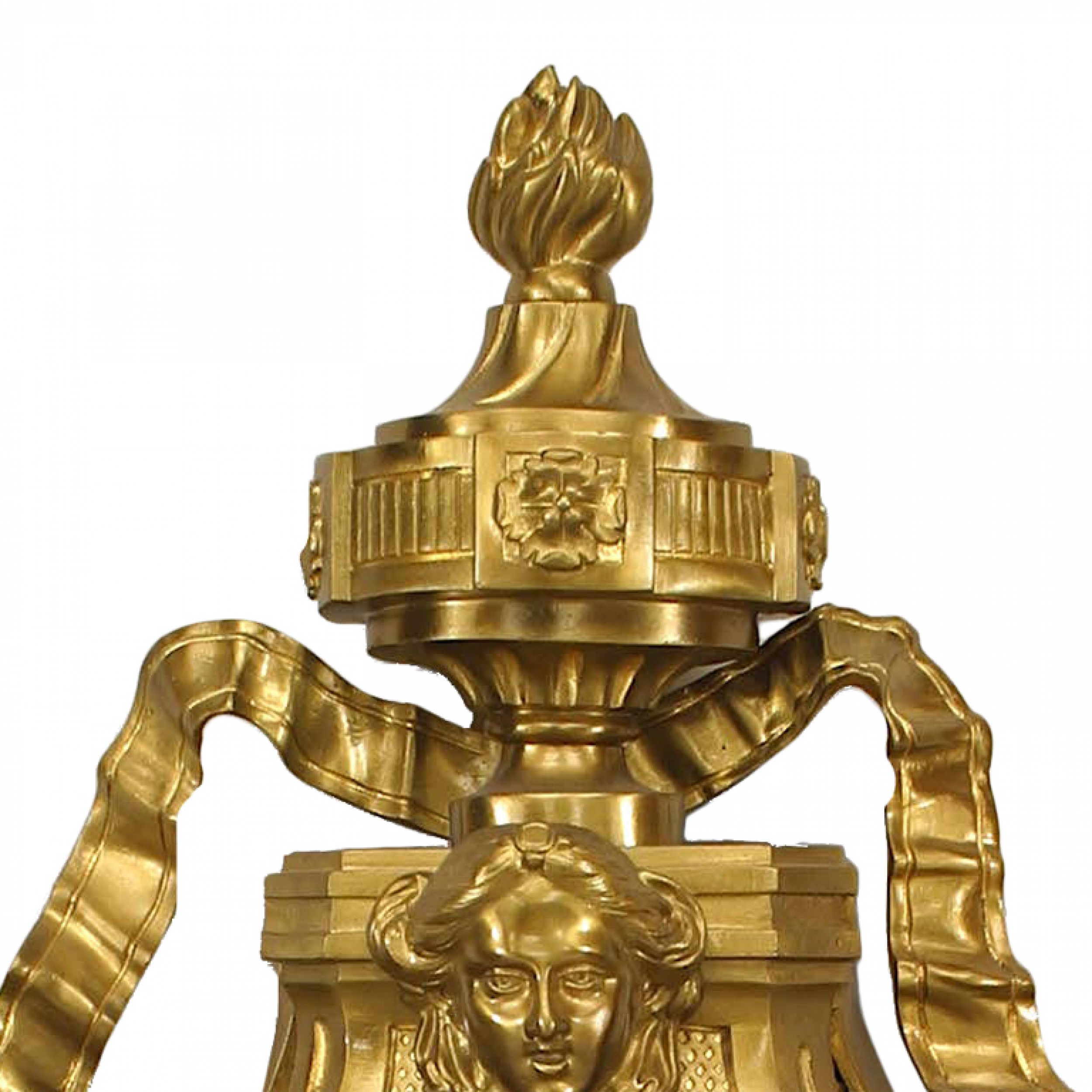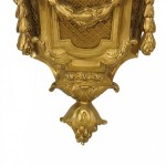 French Louis XVI-style bronze wall barometer with an urn finial top with a head above the round dial and draped with a ribbon design..