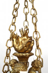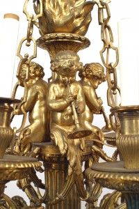 French Louis XVI Style Bronze Dore Cupid Chandelier