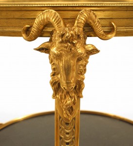 French Louis XVI Style Bronze Dore Ram and Marble End Table