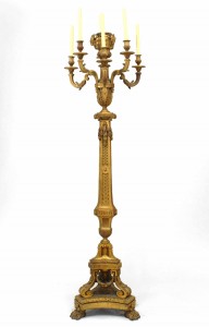 Pair of French Louis XVI-style (19th Century) bronze festoon design floor torchiere with 6 arms and claw foot base (PRICED AS PAIR)..
