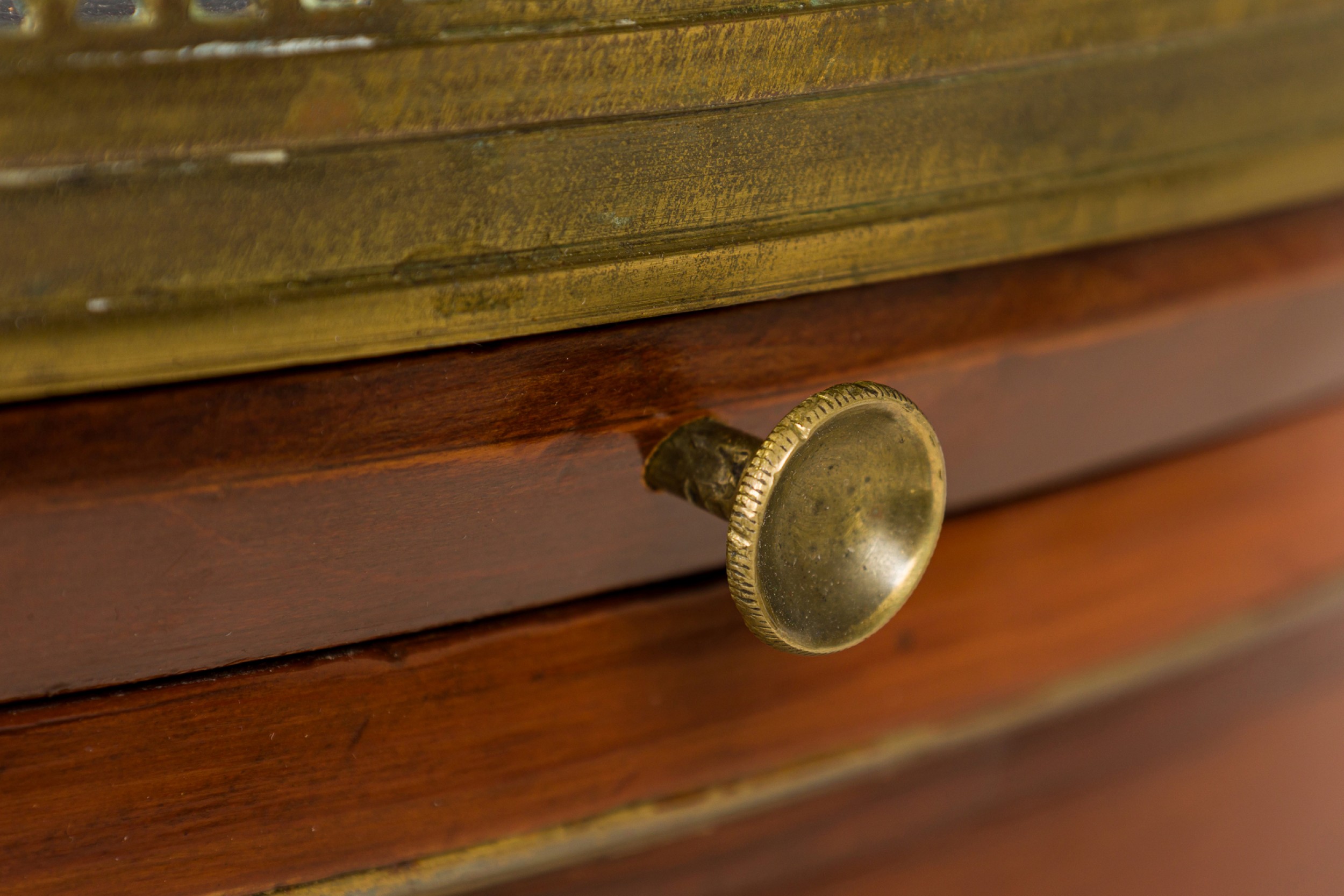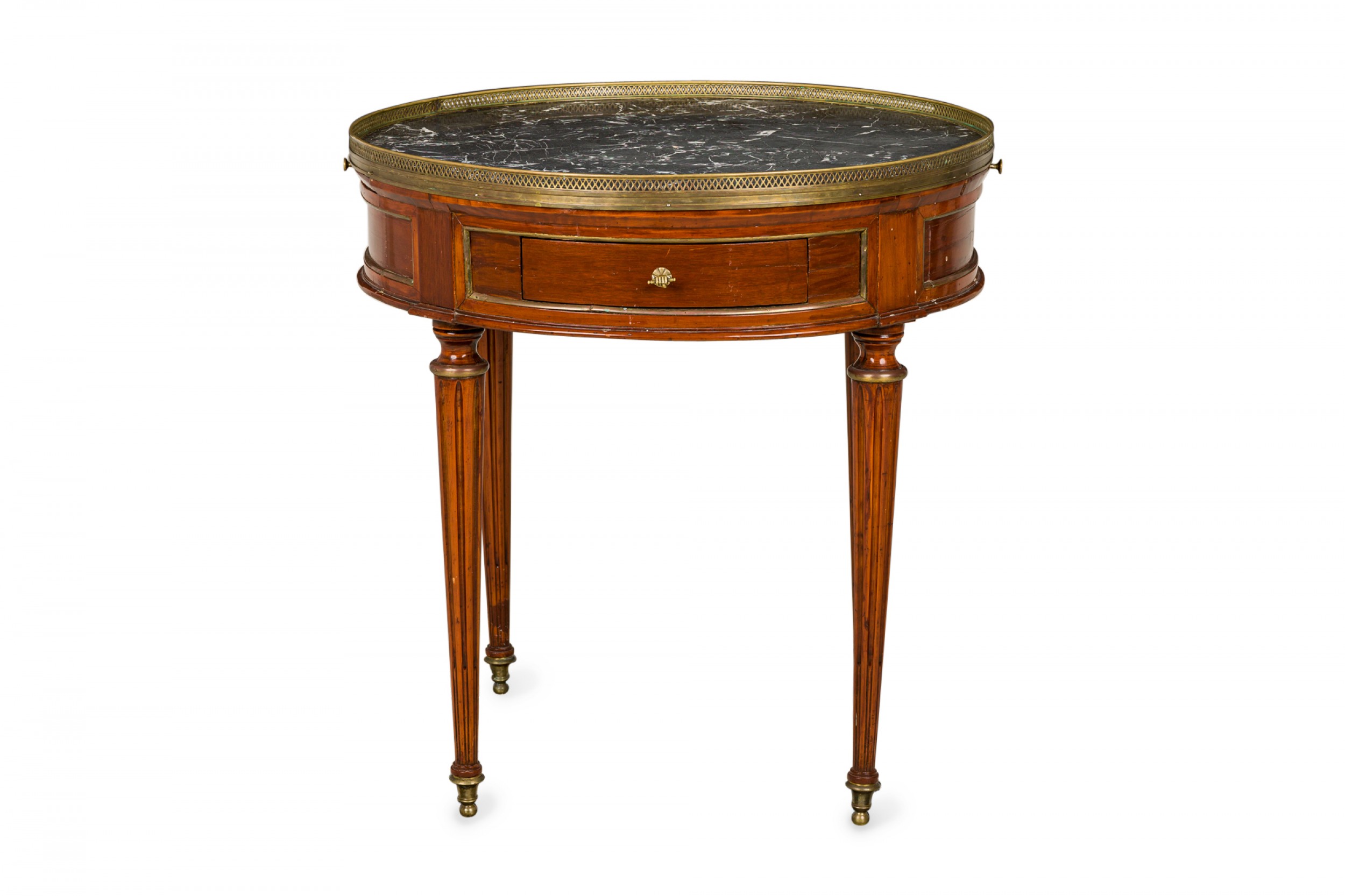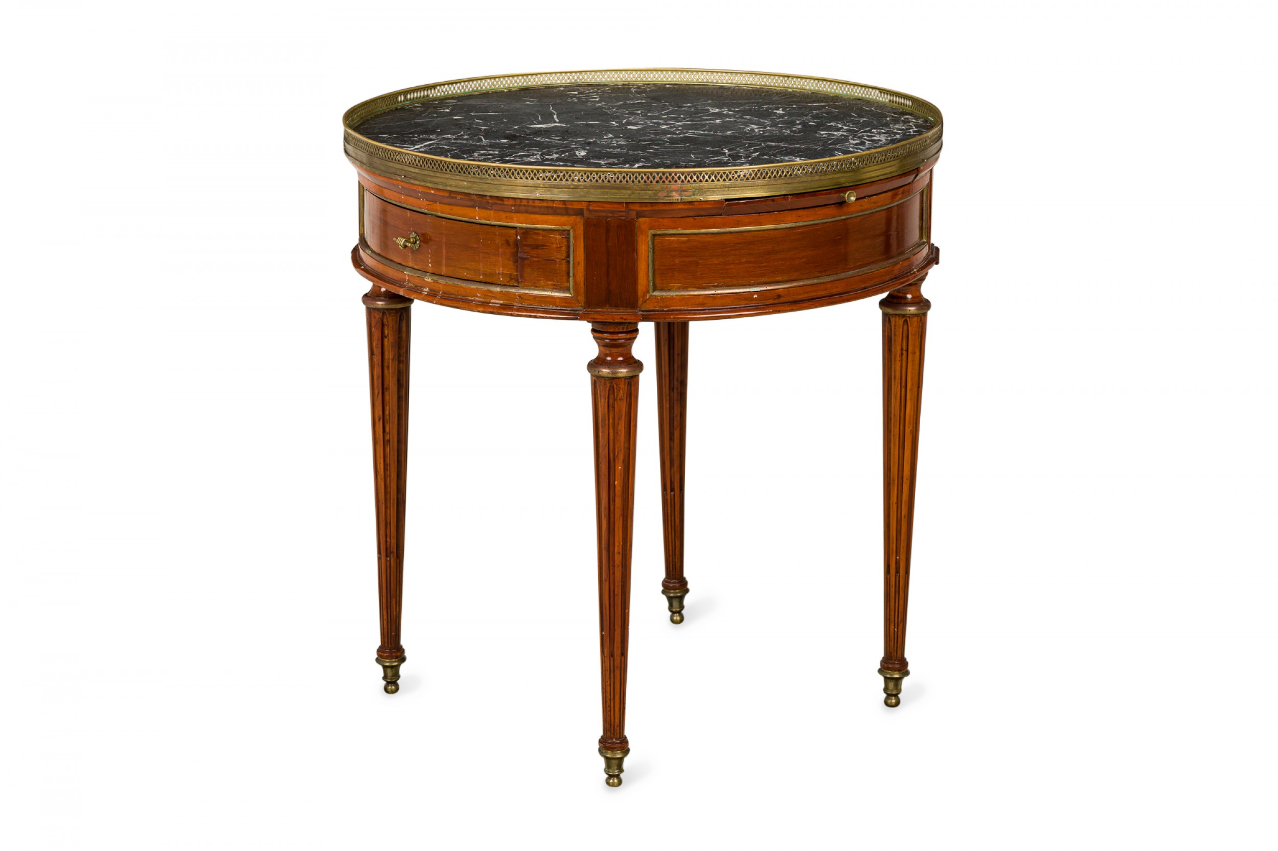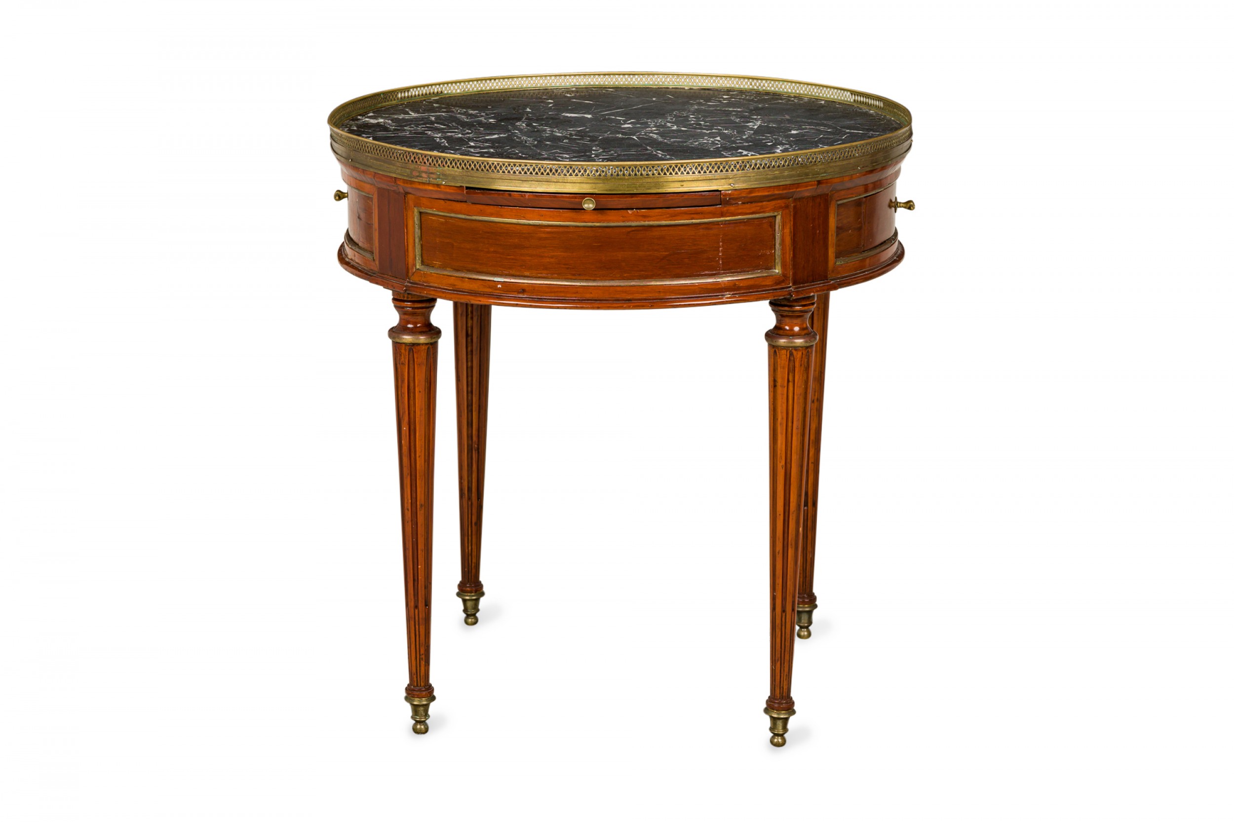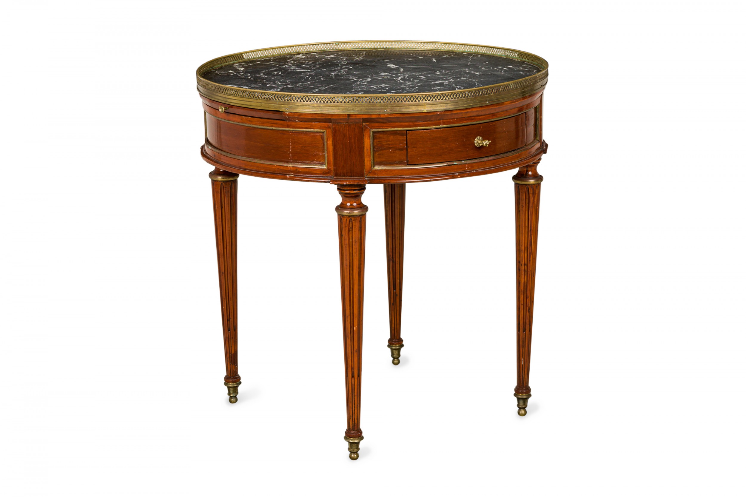 French Louis XVI Style Circular Marble Gallery Top Mahogany Bouillotte Table