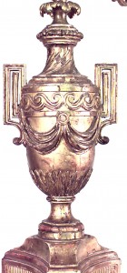 Pair of French Louis XVI-style (19th Century) gilt wood floor torchiere with urn design and 9 bronze arms (PRICED AS PAIR)..