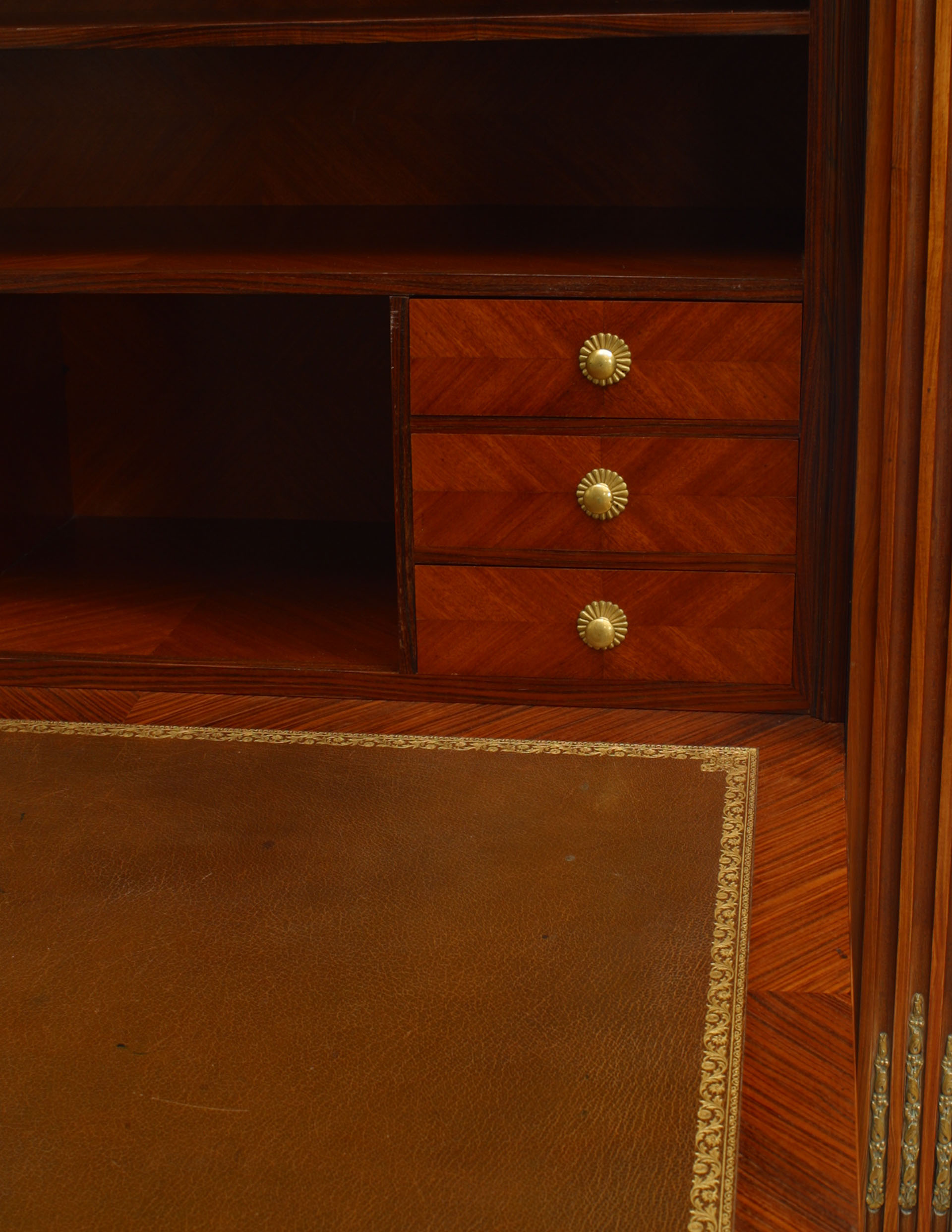 Style: French Materials & Techniques: Bronze, leather, inlaid Category: Cabinets & Case Goods, Office/Library