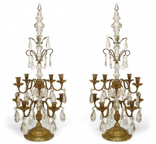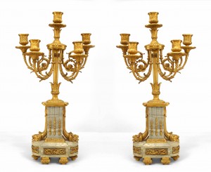 Pair of French Louis XVI Style Marble and Bronze Candelabras