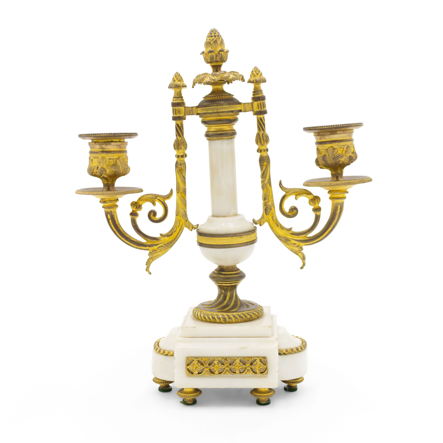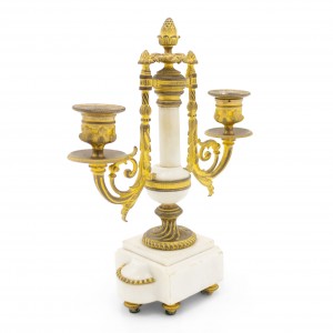 PAIR of French Louis XVI-style (19th Century) white marble and bronze 2 arm candelabras (PRICED AS PAIR)