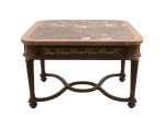 French Louis XVI Style Walnut and Pink Marble Coffee Table