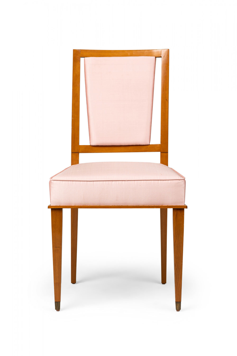 Set of 8 French Maple and Pink Silk Side Chairs (manner of Jacques Adnet)