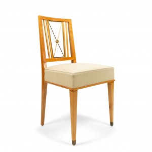 Style: Mid-Century Materials & Techniques: Brass, maple, silk Category: Seating