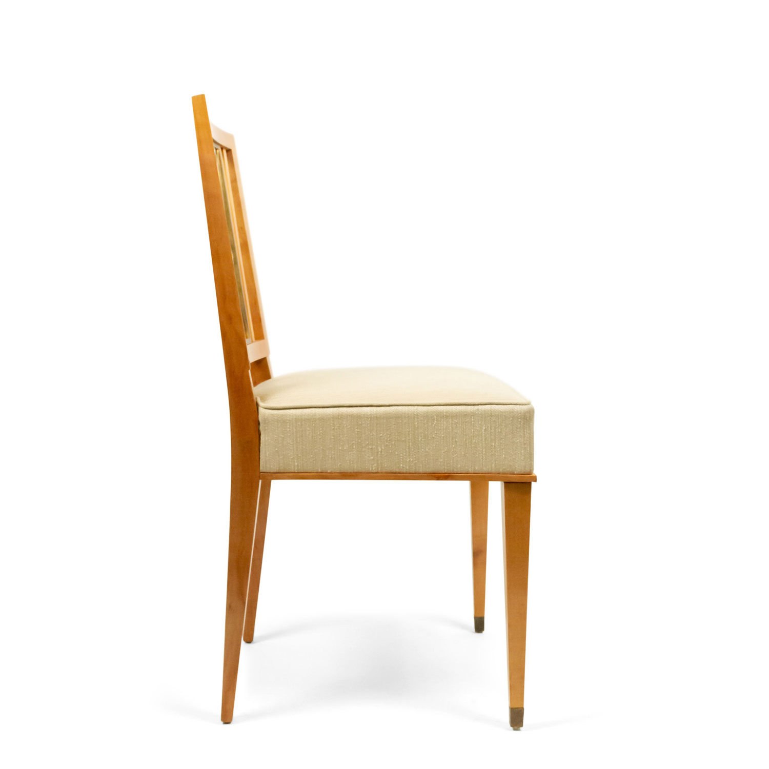 Set of 4 Jacques Adnet French Mid-Century Maple and Silk Side Chairs