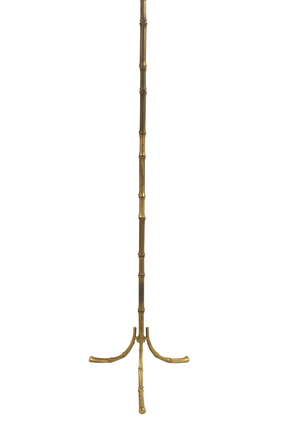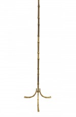 French 1950s gilt bronze faux bamboo design floor lamp resting on 3 feet (in the style of BAGUES).