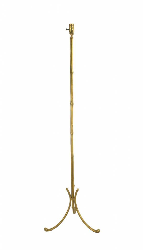 French 1950s gilt bronze faux bamboo design floor lamp resting on 3 feet (in the style of BAGUES)