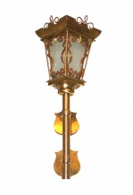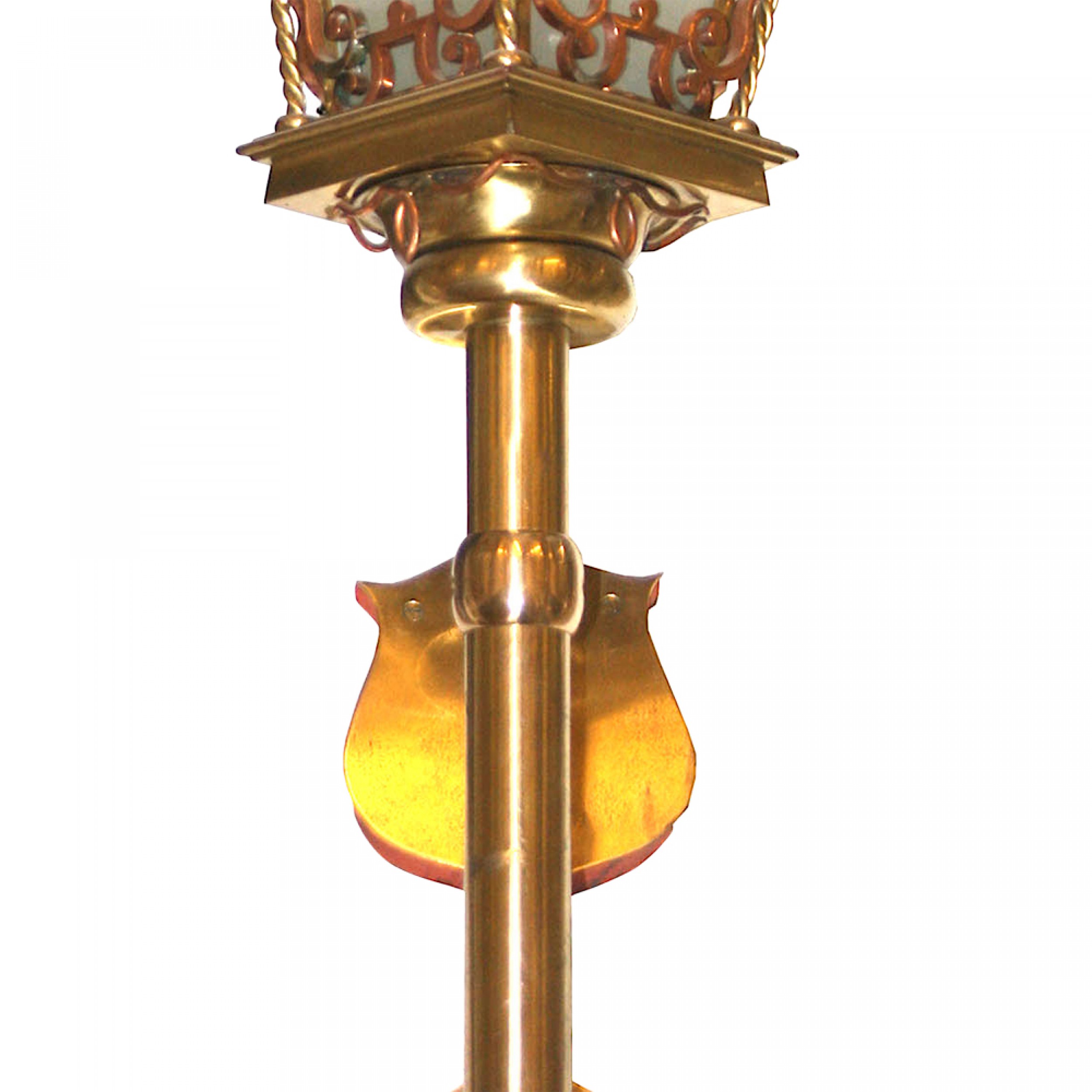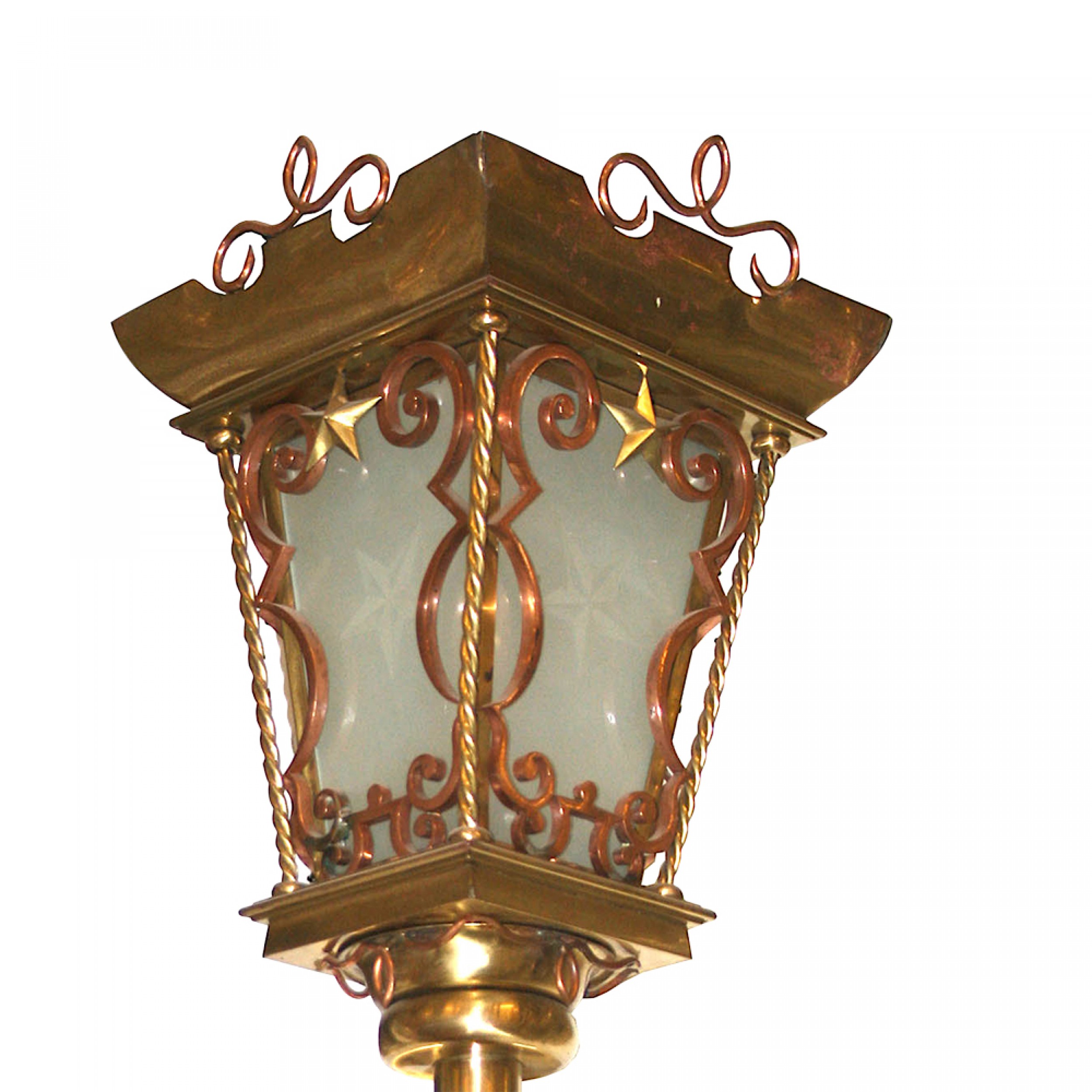 Style: Mid-Century Materials & Techniques: Brass, copper, etched, glass, metal Category: Lighting Good; Wear consistent with age and use