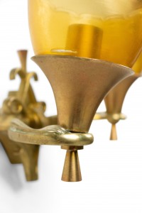 Style: Mid-Century Materials & Techniques: Glass, brass, bronze, scalloped Category: Lighting