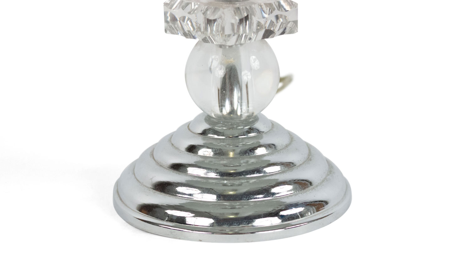 French 1940s table lamps with chrome dome shaped shade and base between alternating 3 large glass balls and 2 squares.