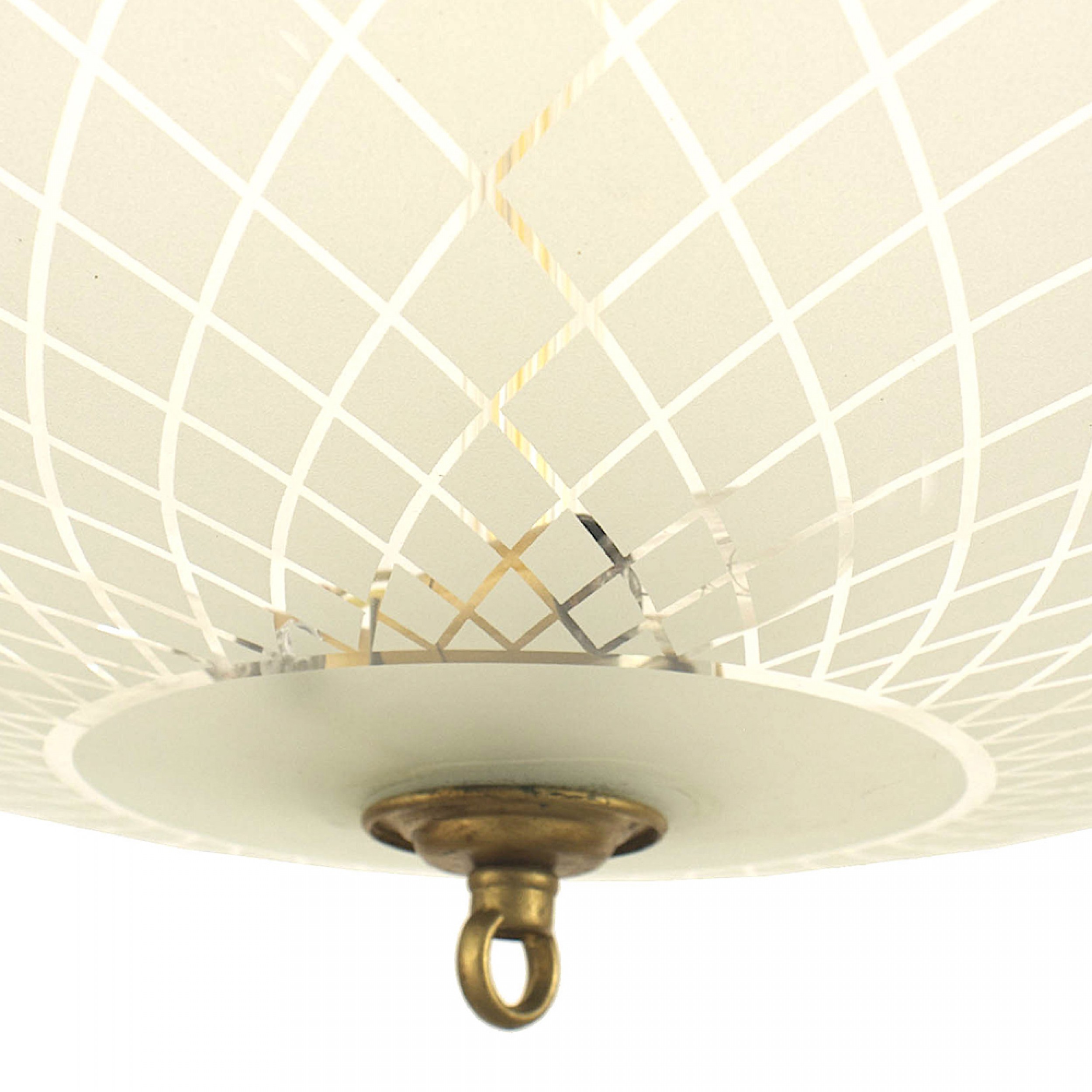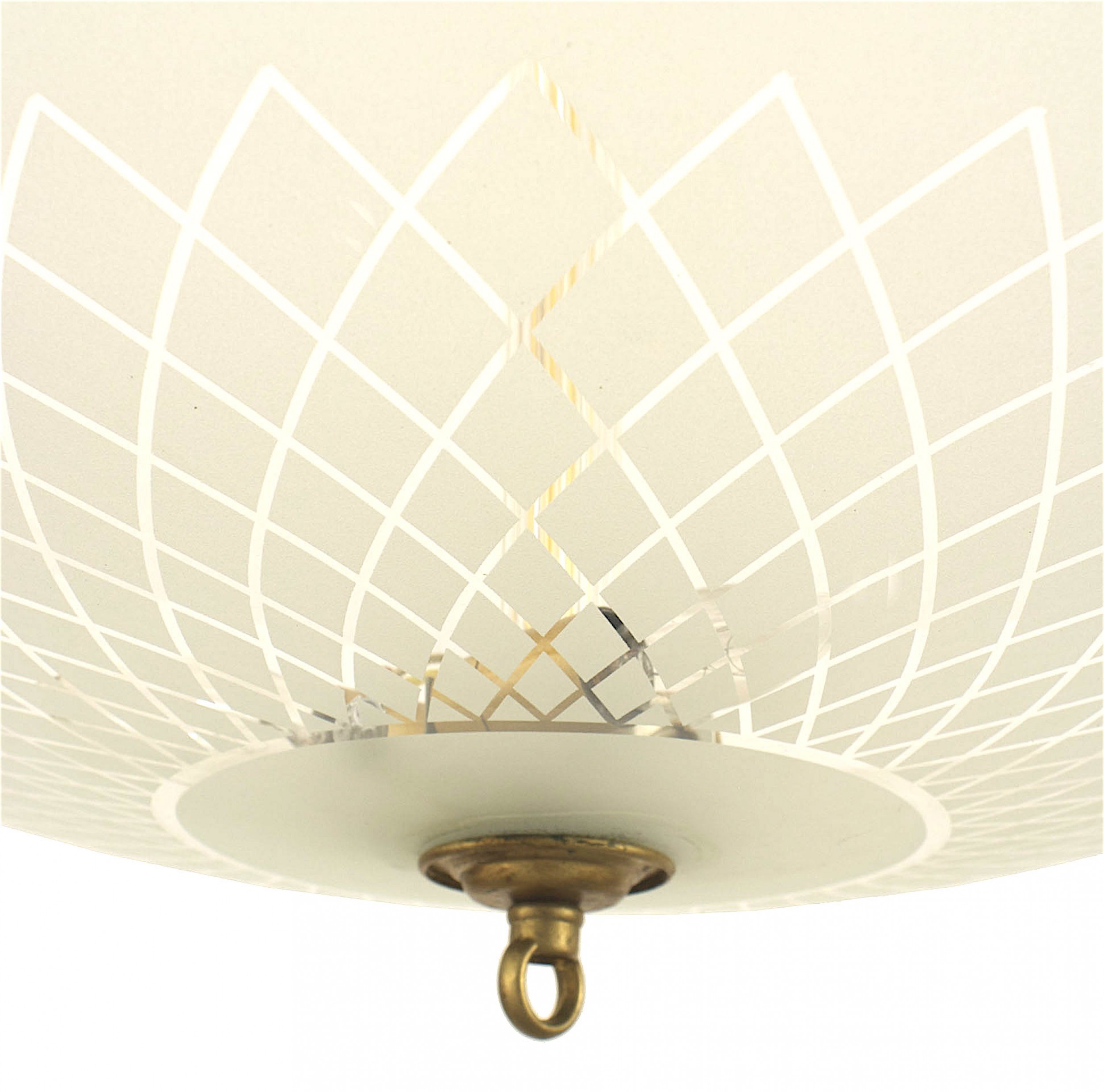 Style: Mid-Century Materials & Techniques: Brass, glass, scalloped, woven Category: Lighting