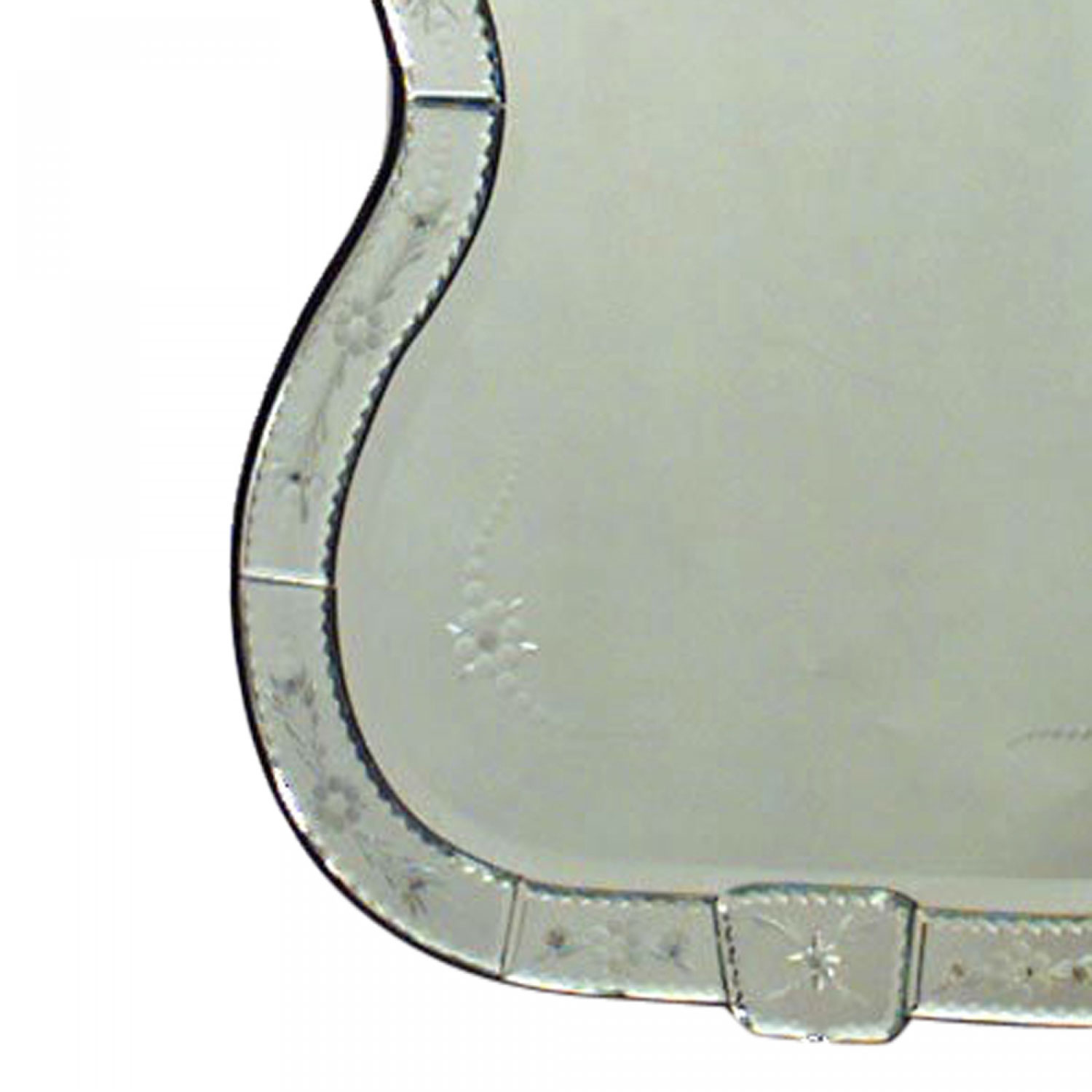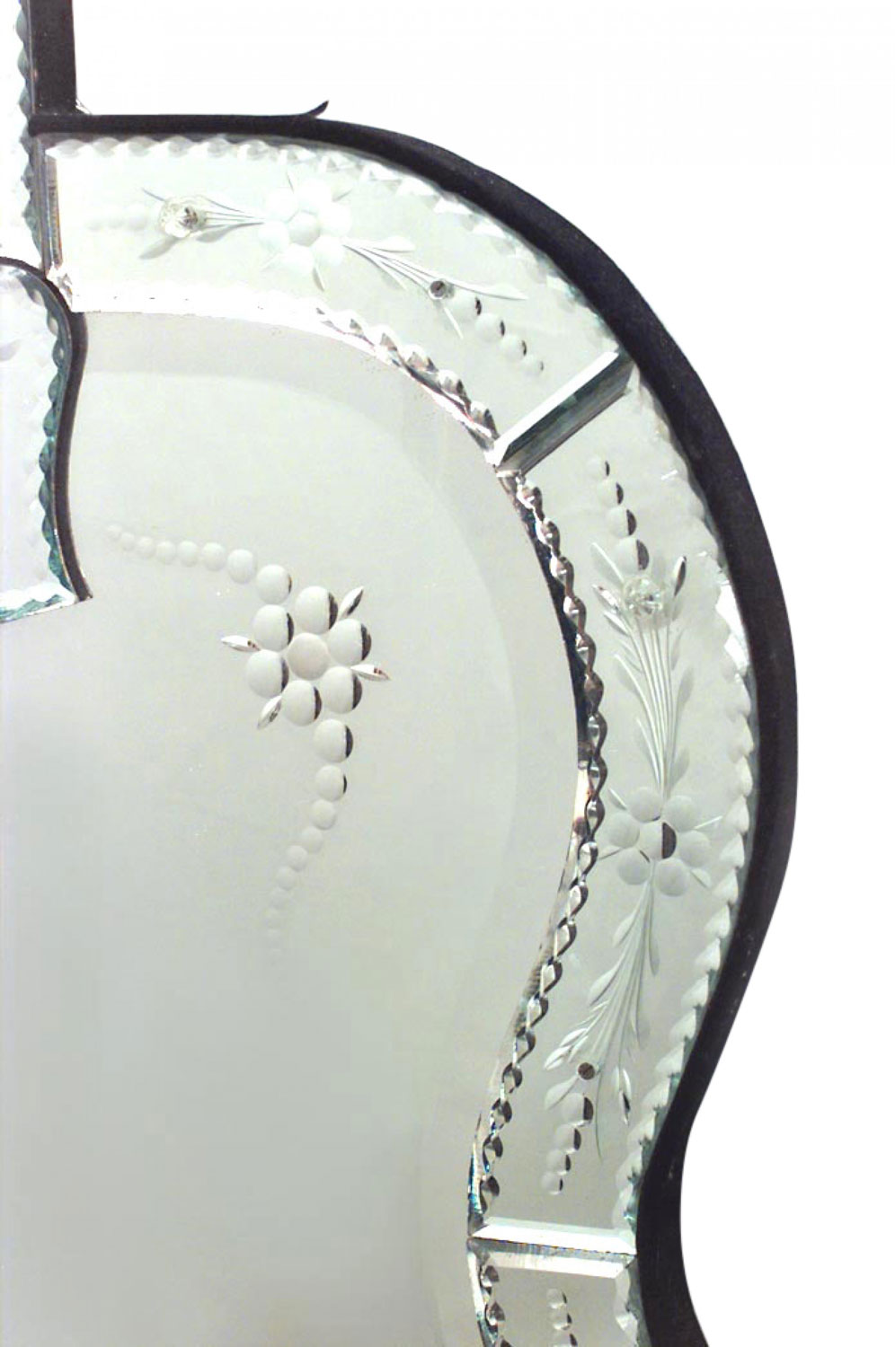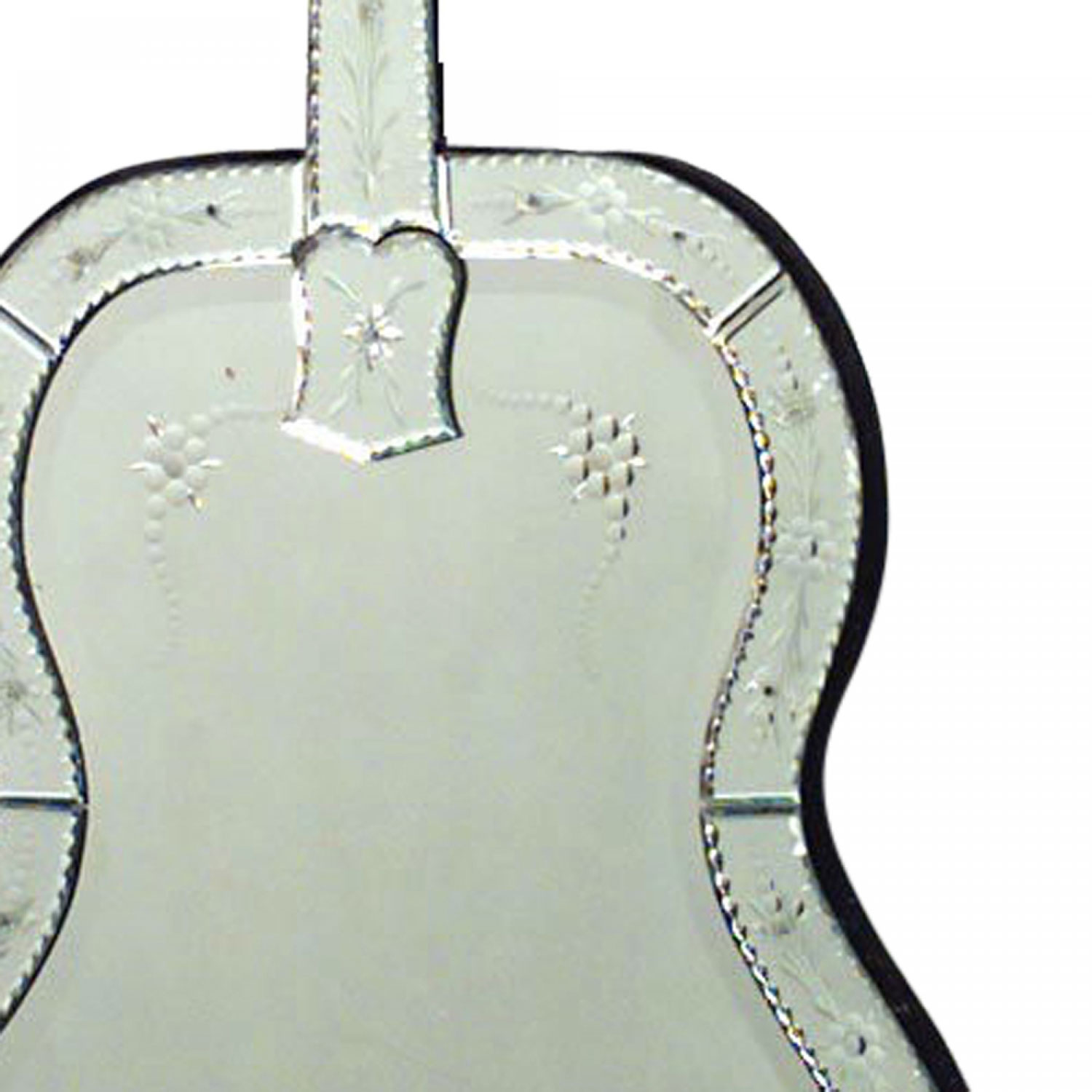 French Mid-Century Guitar Shaped Etched Glass Wall Mirror