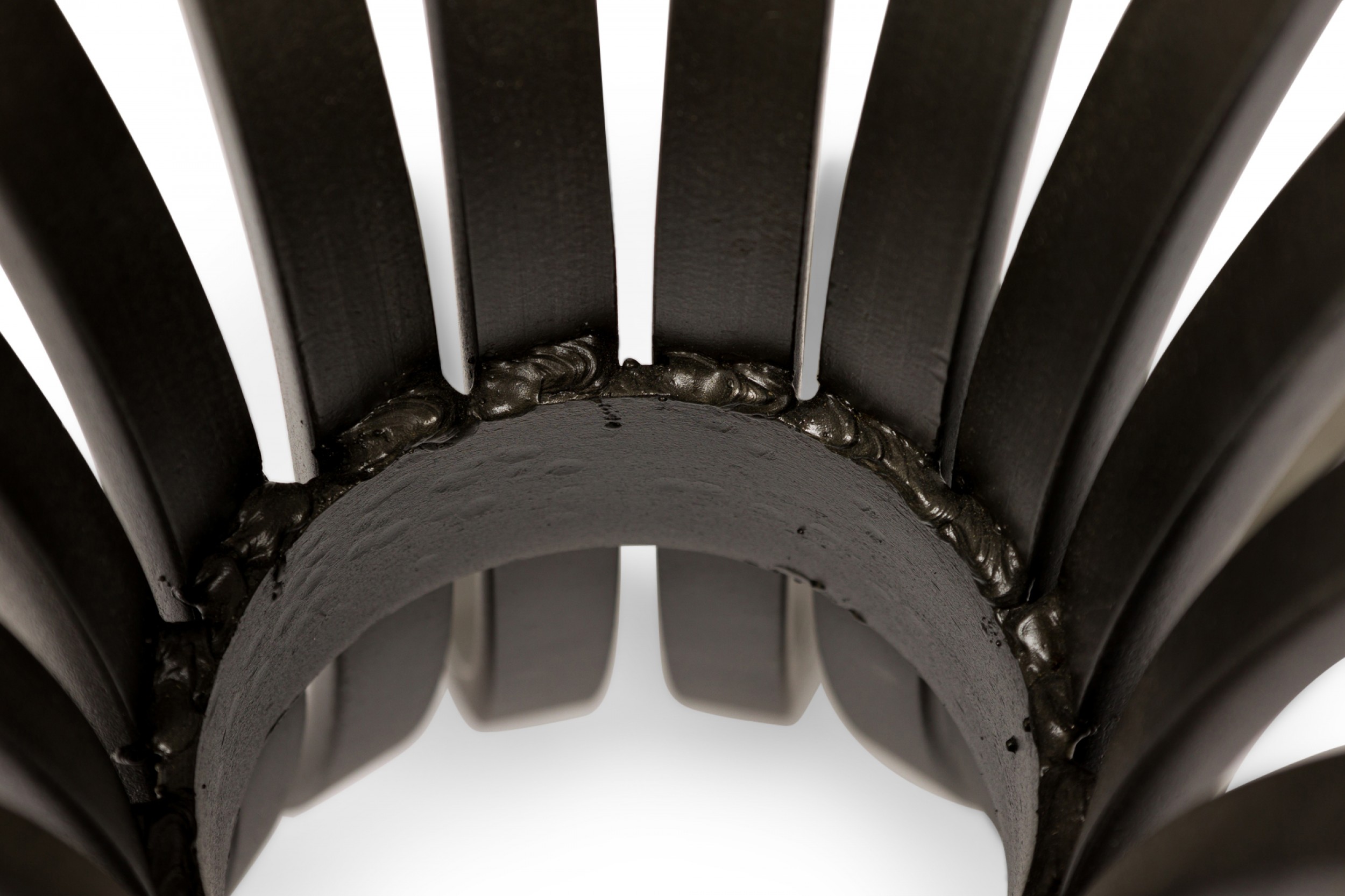 French Mid-Century Hourglass Form Iron Slat and Circular Glass Occasional Table