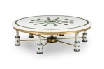 French Mid-Century michael Bennett Large Green and White Marble coffee Table