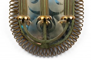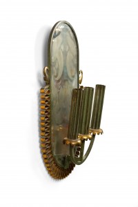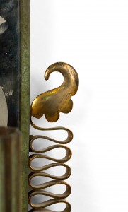 French Mid-Century Patinated Brass and Mirror Wall Sconce