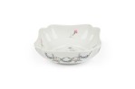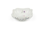 French Mid-Century porcelain scalloped rimmed white dish / bowl with hand painted floral design in center and outer rim with purple and pink flowers (LIMOGES, FRANCE)