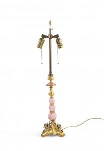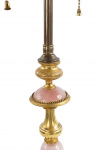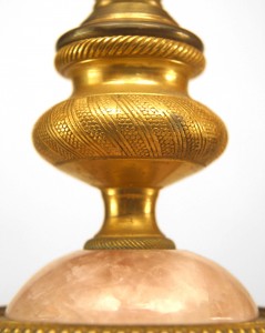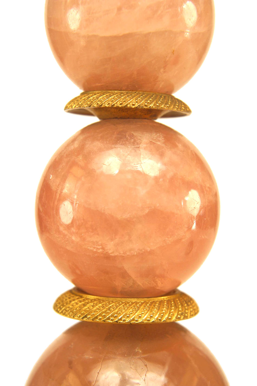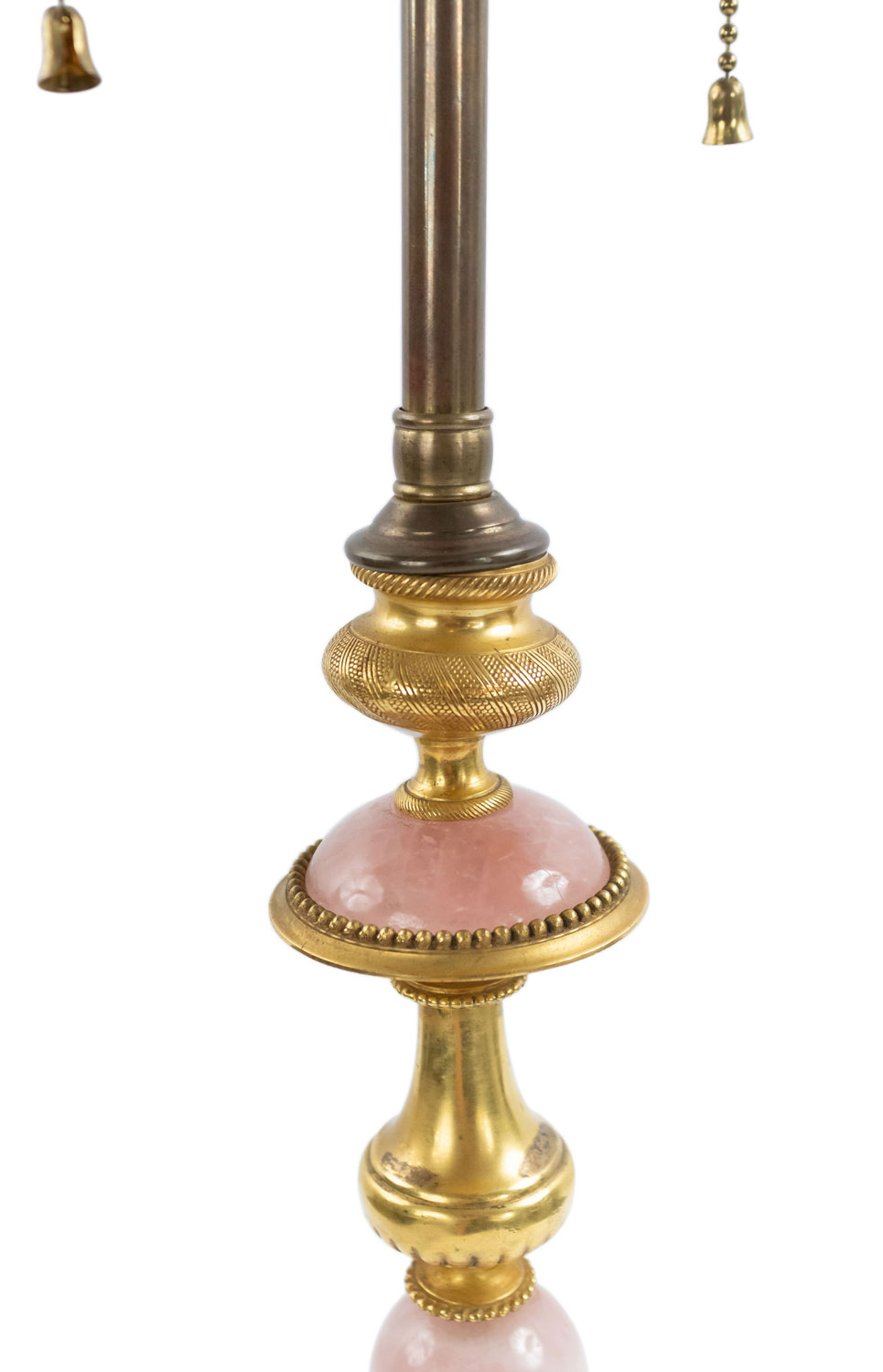Pair of French Mid-Century Rose Quartz and Bronze Table Lamps