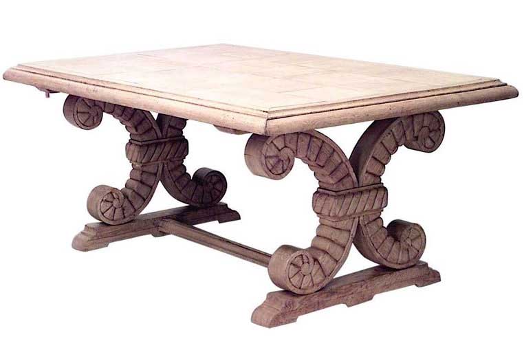 Style: Mid-Century Materials & Techniques: Oak, carved, inlaid Category: Tables