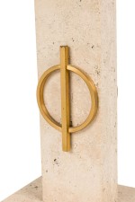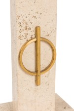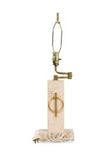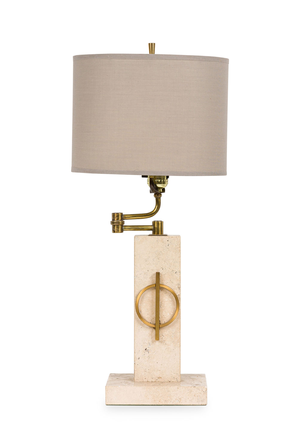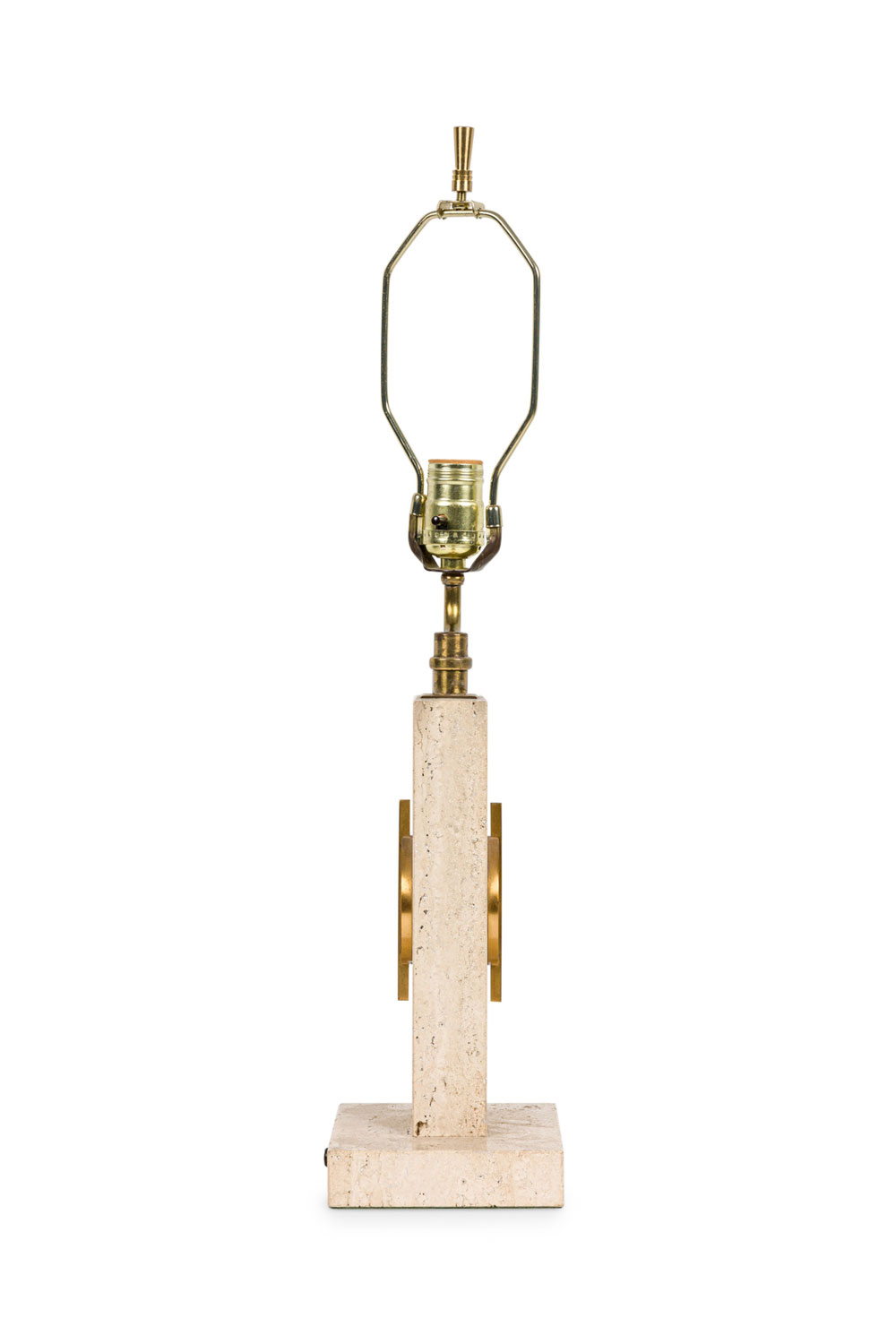Style: Mid-Century Materials & Techniques: Bronze, marble, travertine Category: Lighting Condition: Ships without a shade