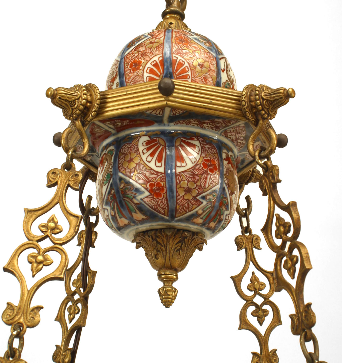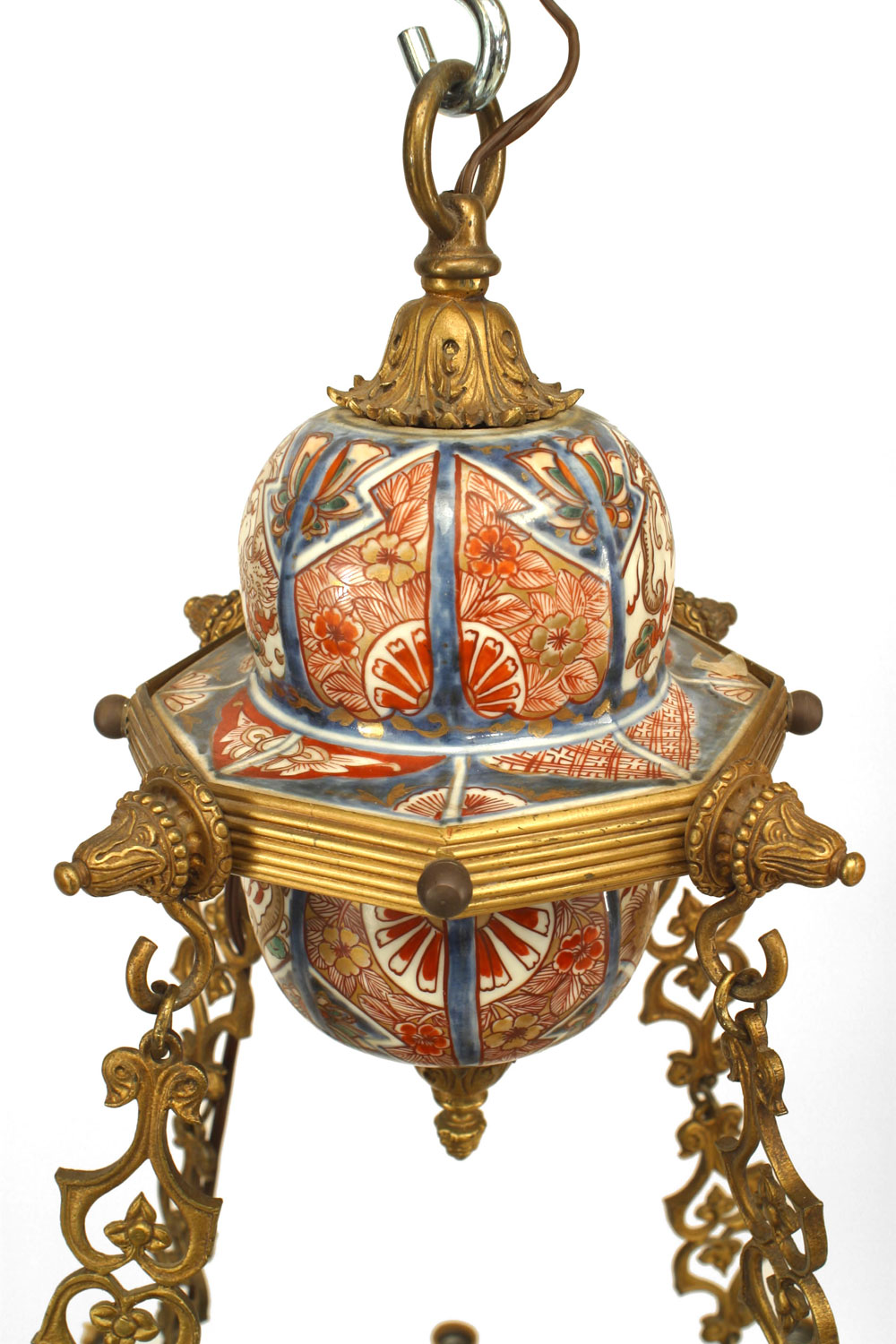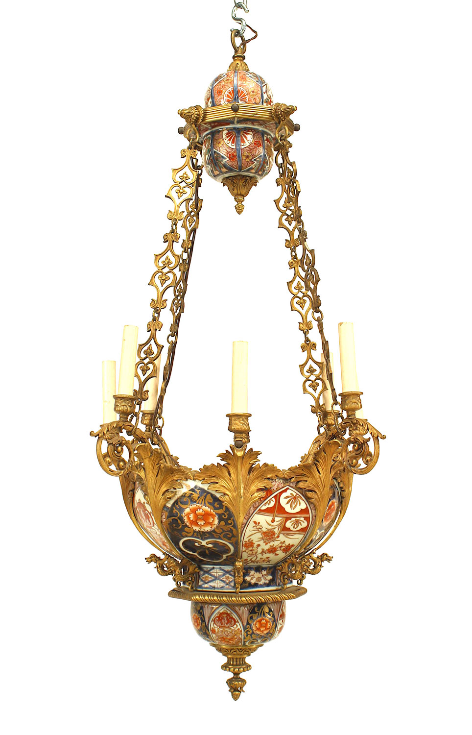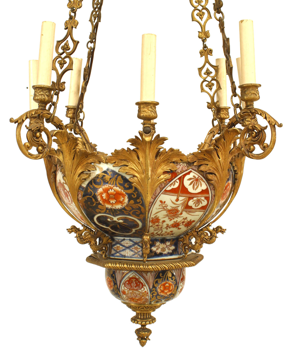 French Napoleon III Imari Porcelain and Bronze Dore Chandelier