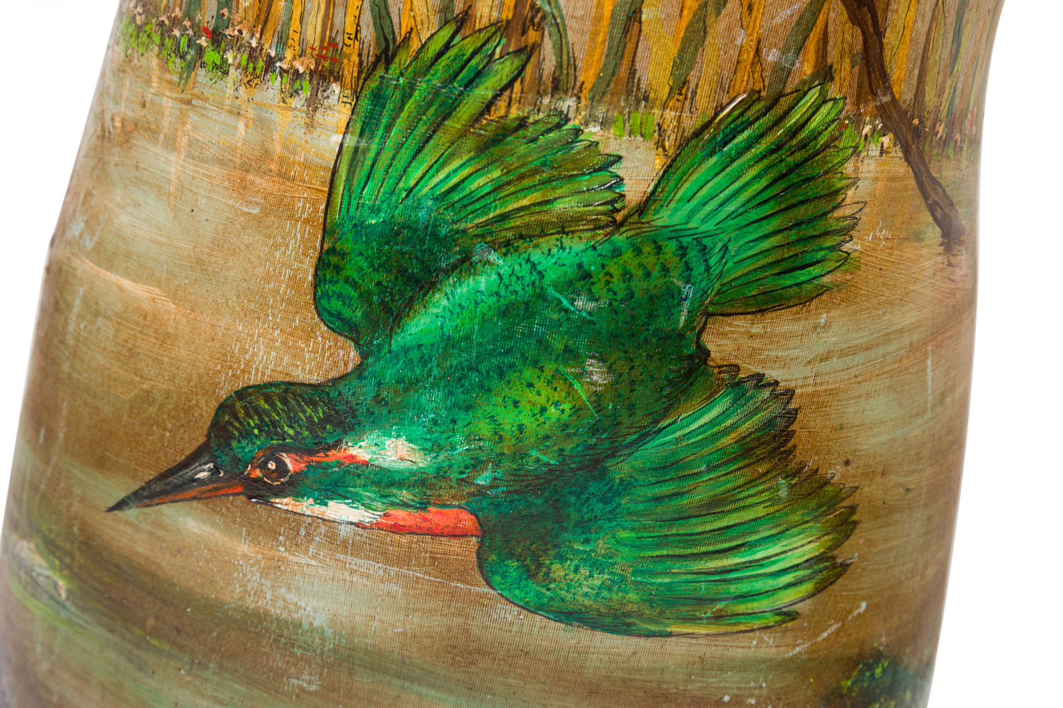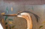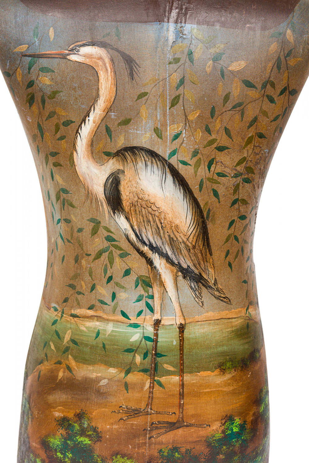 French painted mannequin figure with green kingfishers on front and heron on back. (20th Cent)