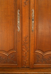 Style: French Materials & Techniques: Oak, carved, pediment Category: Cabinets & Case Goods