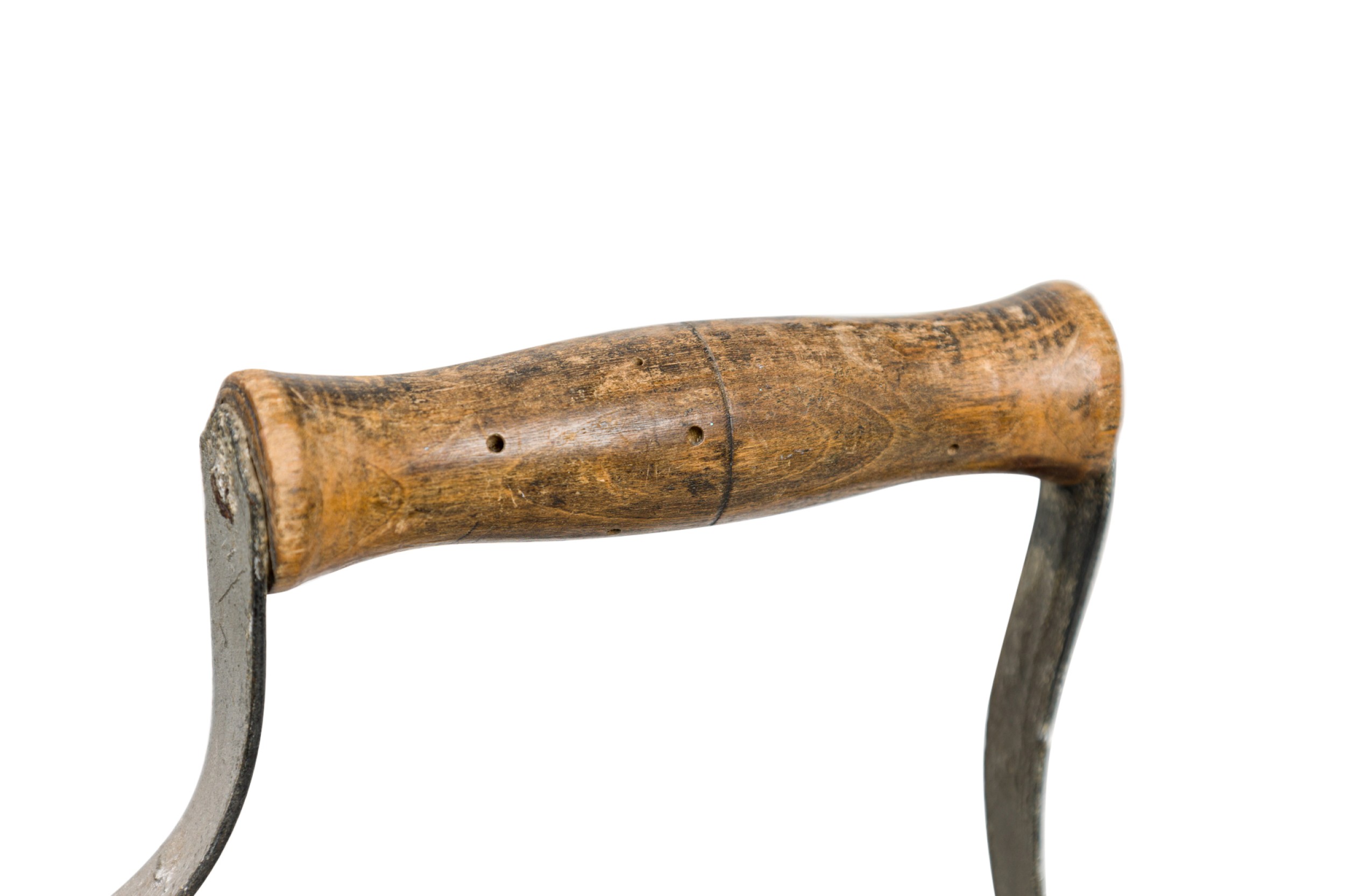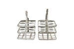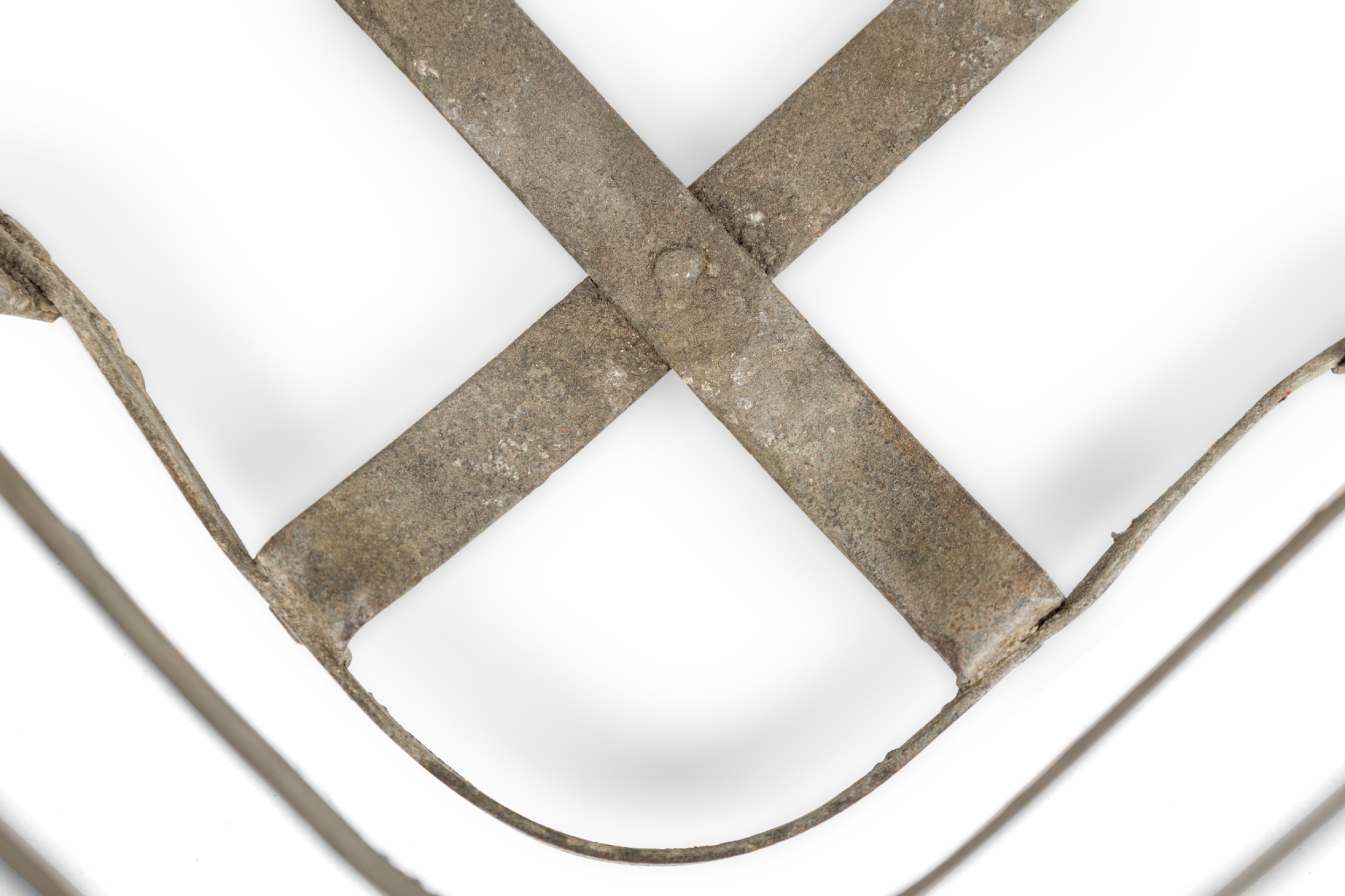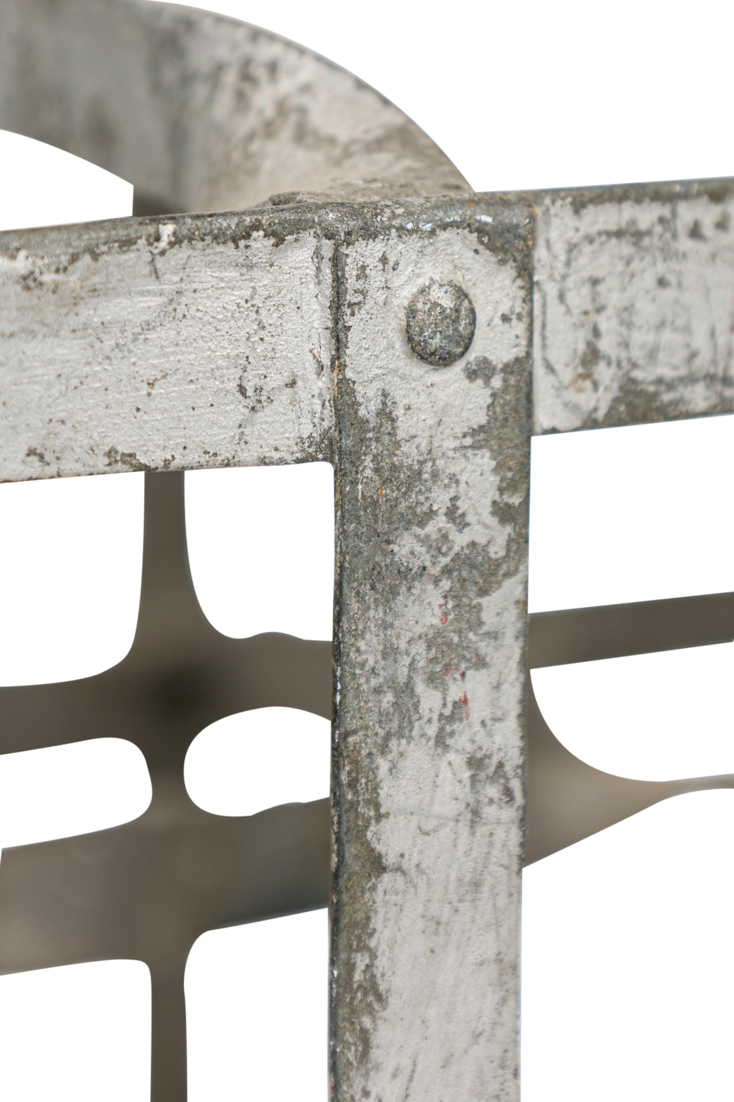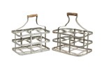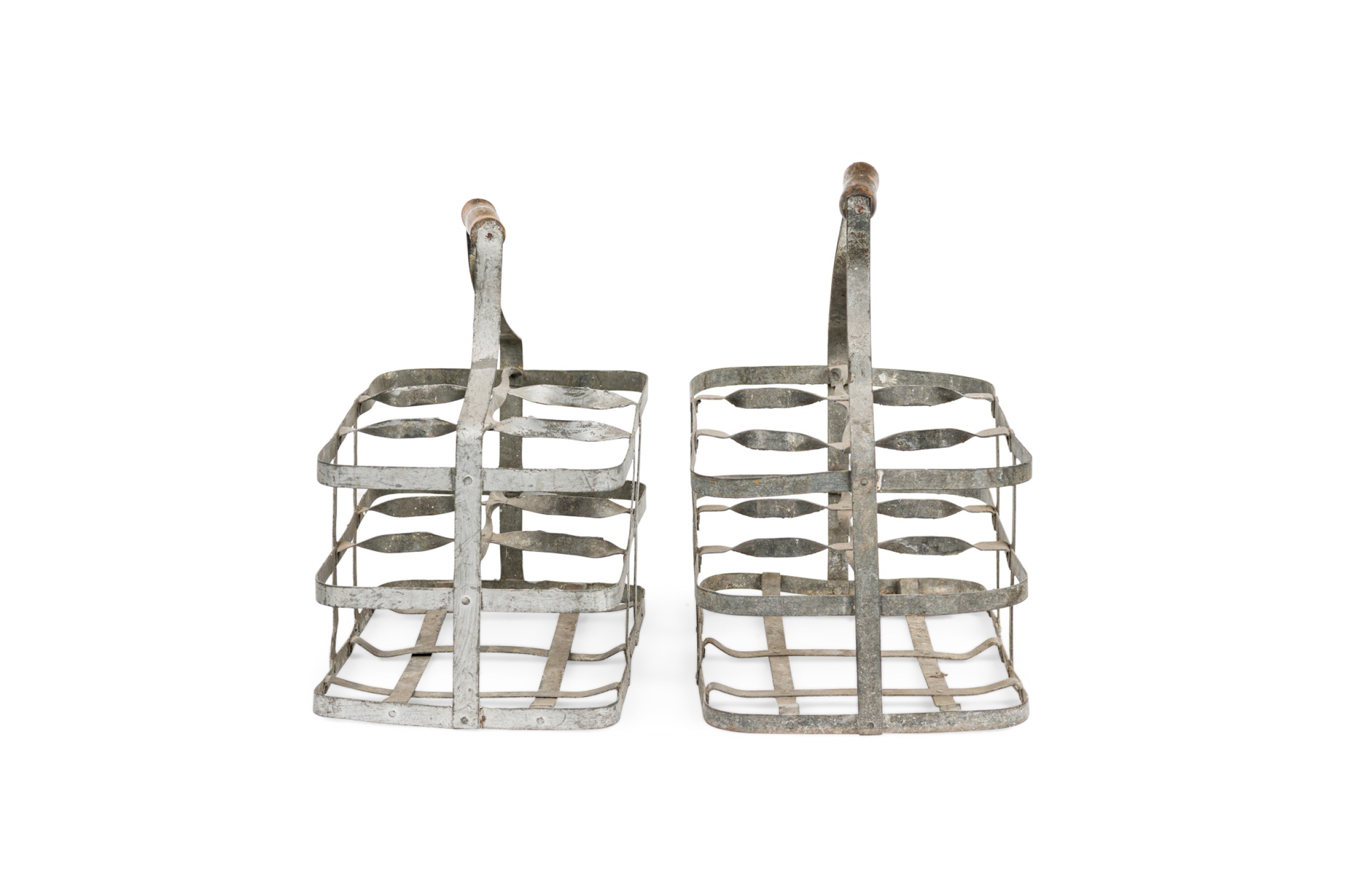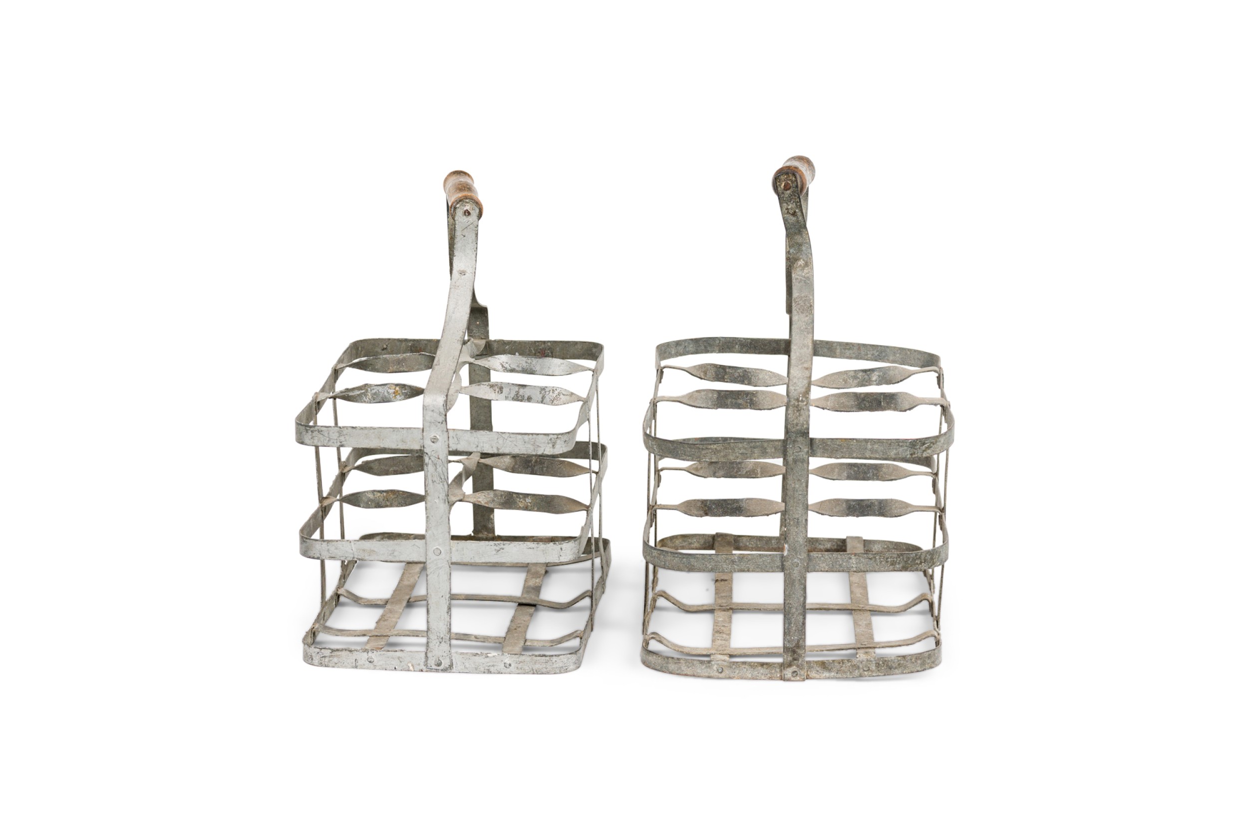 French Provincial (20th Cent) iron 6 bottle (magazine) carrier with wood handle. (2-PRICED EACH).