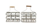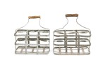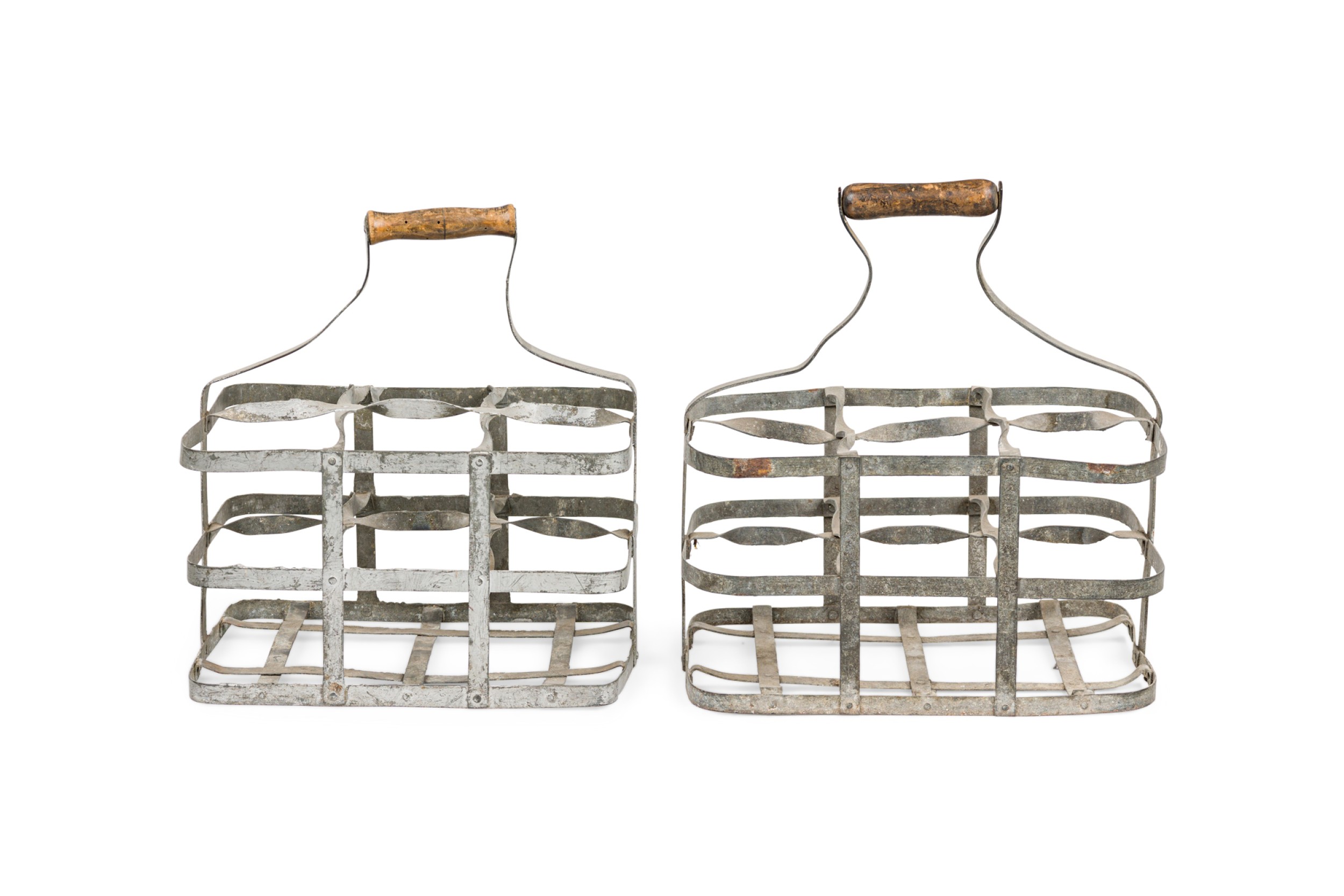 French Provincial (20th Cent) iron 6 bottle (magazine) carrier with wood handle. (2-PRICED EACH)