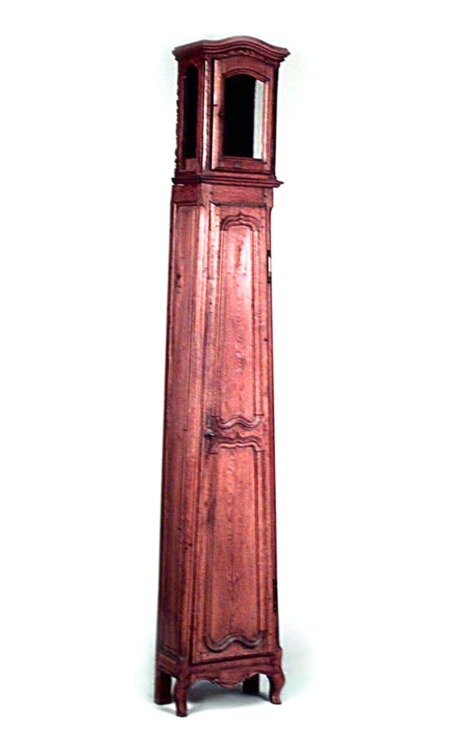 French Provincial (18th Century) oak grandfather clock case /cabinet with single narrow front door (two sections) (no mechanical parts).