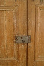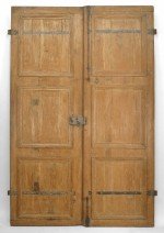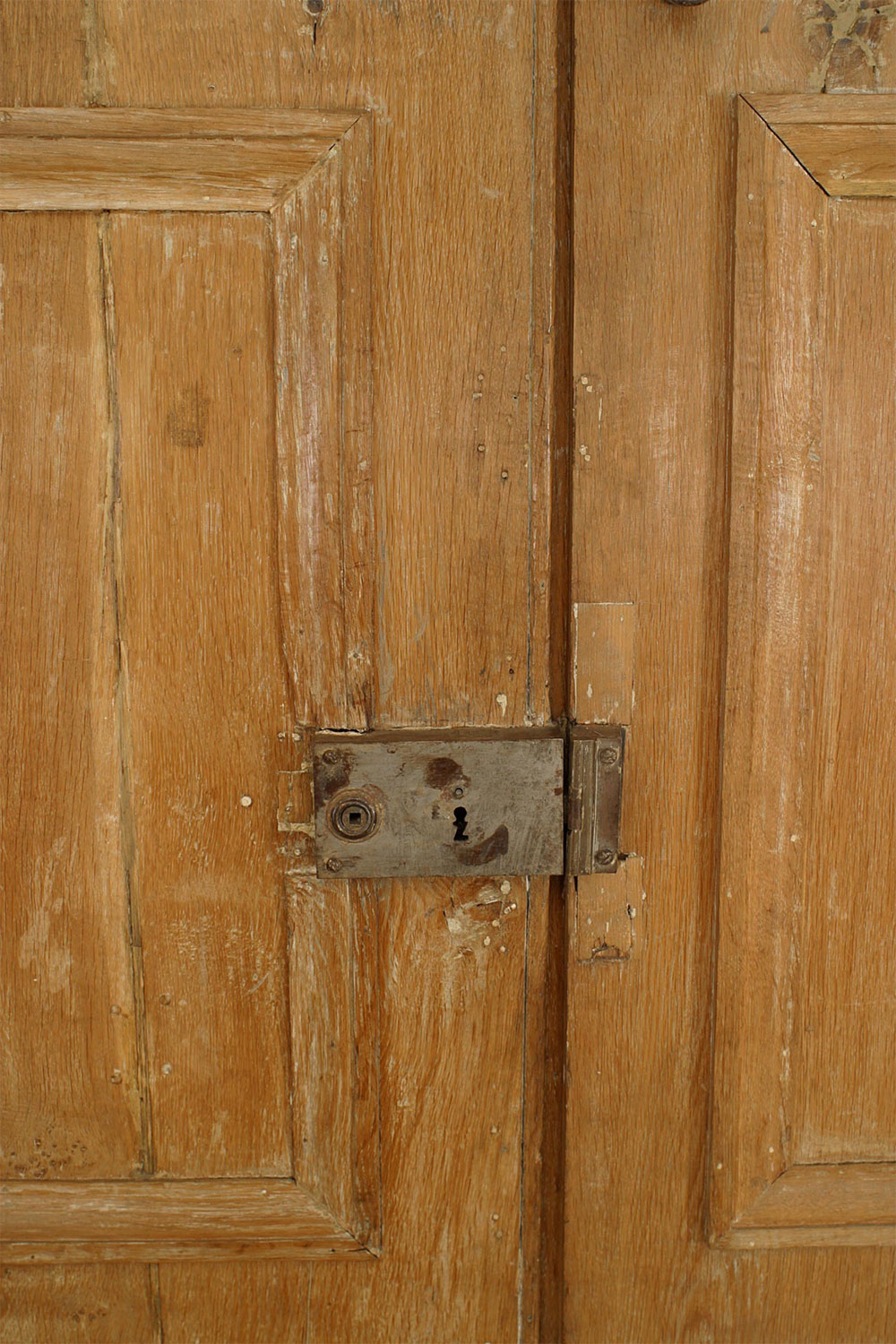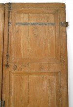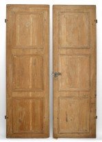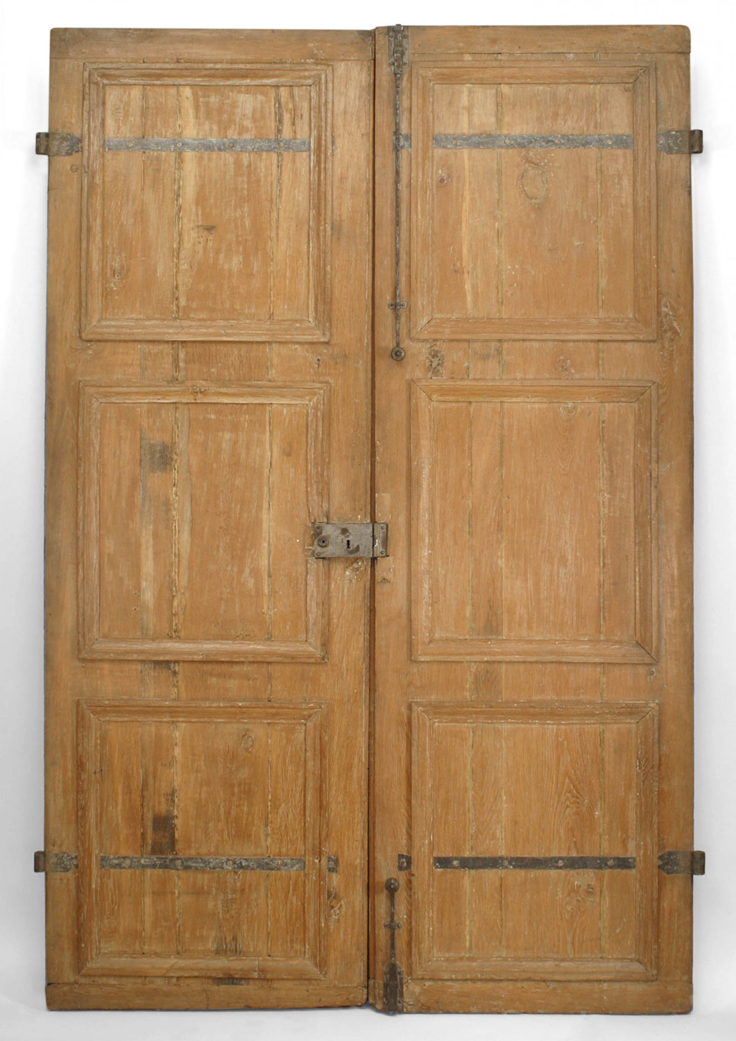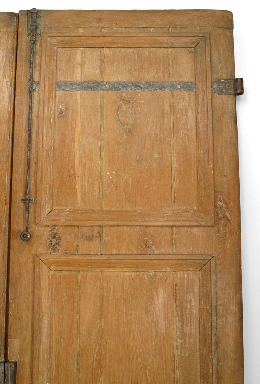 PAIR of French Provincial style (19th Century) stripped pine doors with iron hardware and 3 square panels (PRICED AS PAIR).