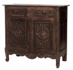 French Provincial (19th Century) walnut carved sideboard cabinet with 2 drawers and 2 doors.