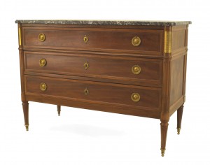 French Provincial Wood and Brass Carved 3-Drawer Chest