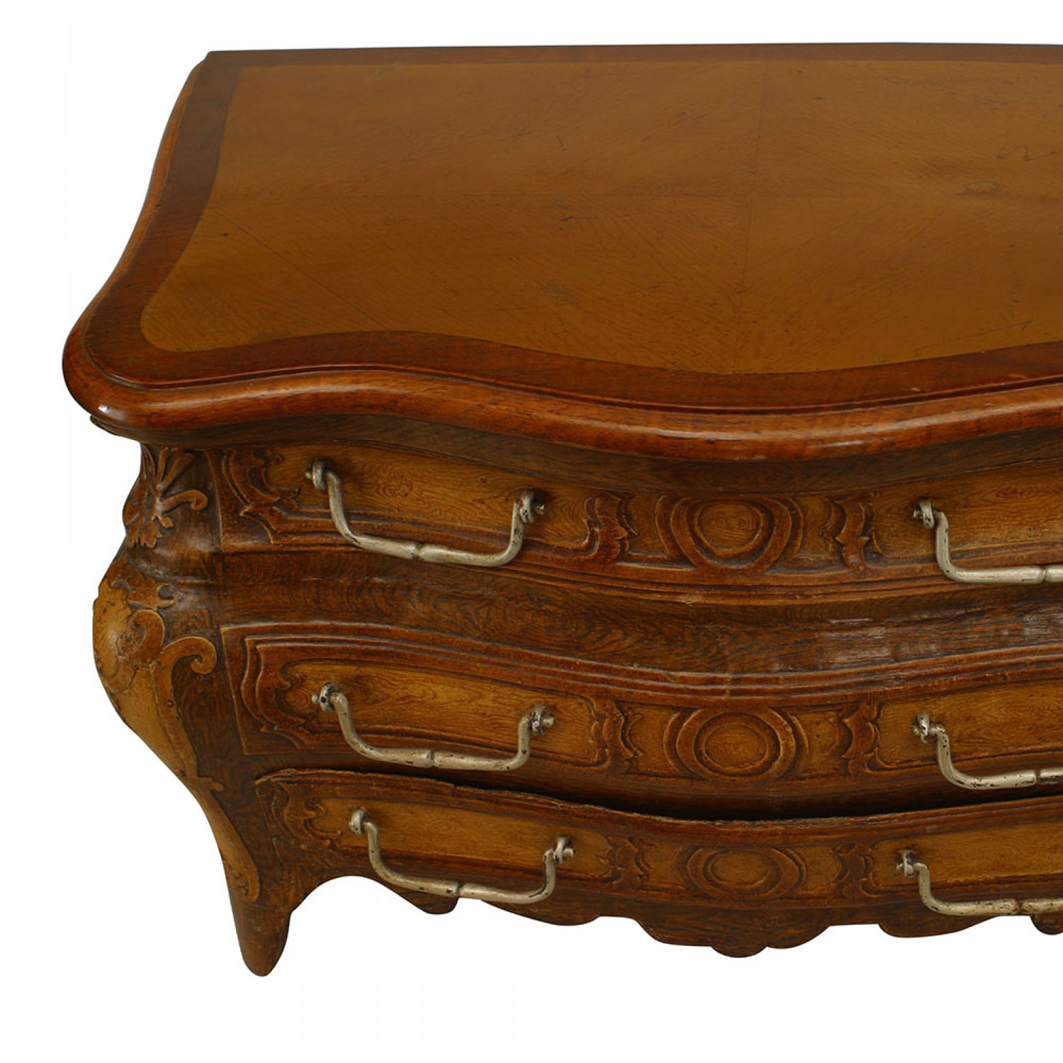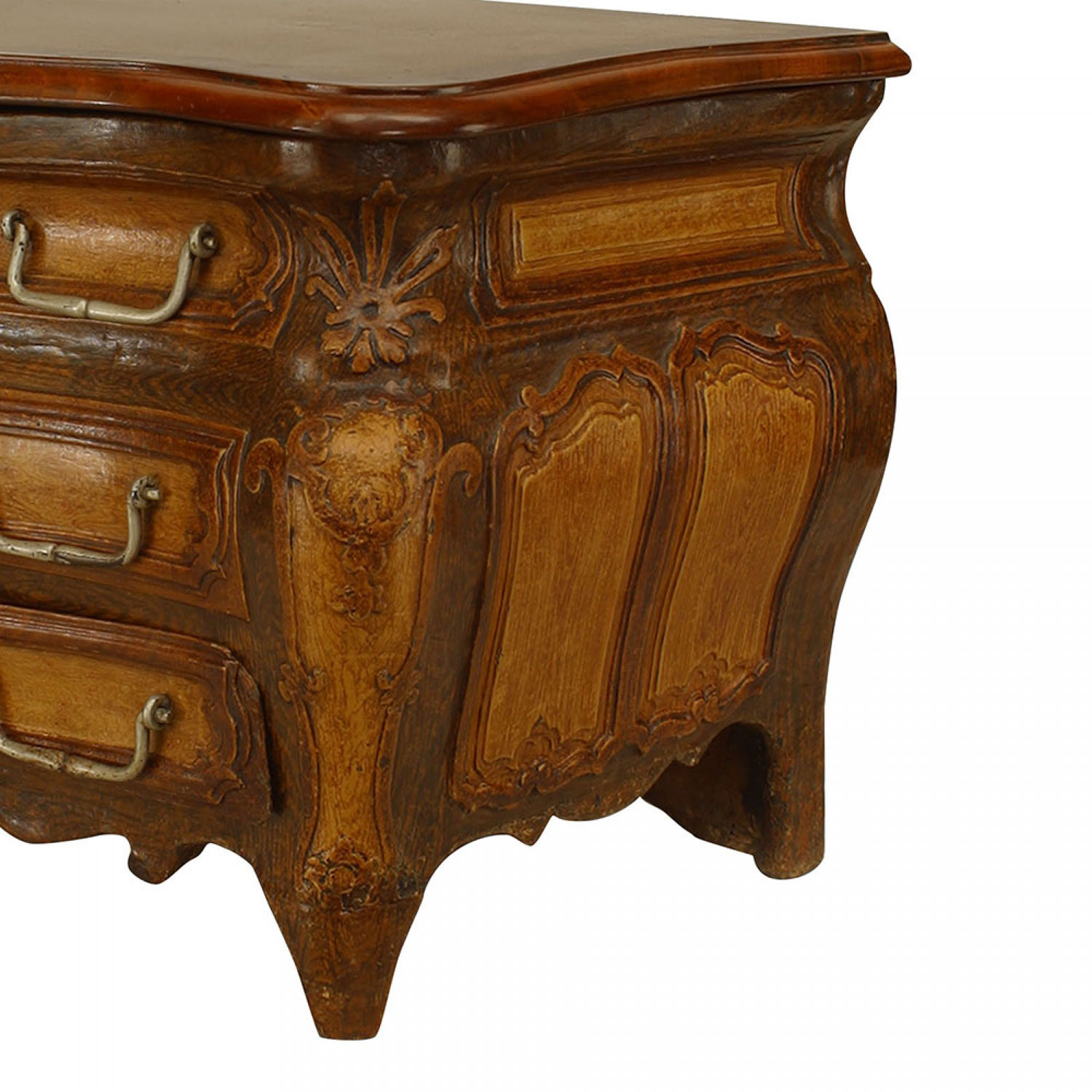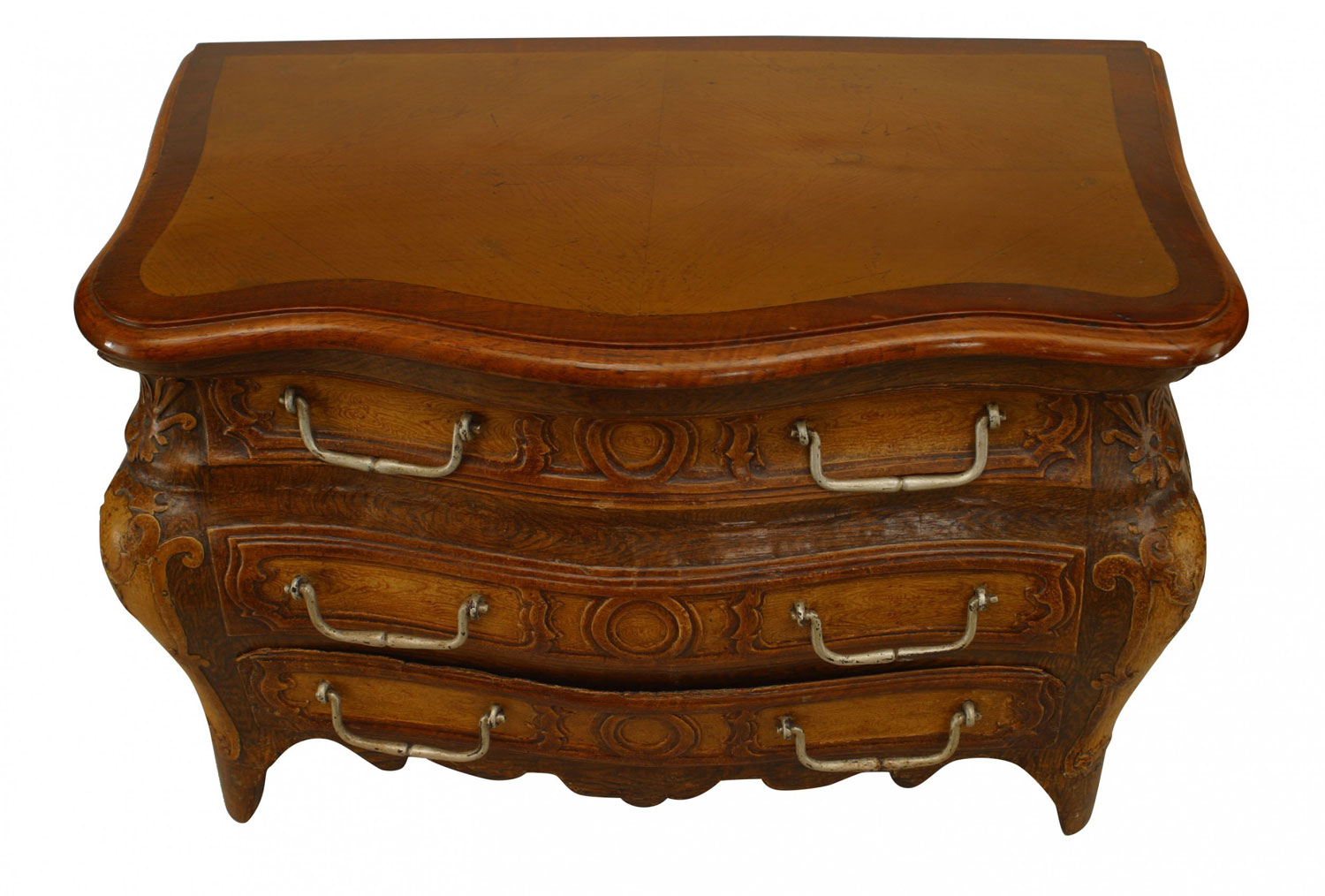 French Regency style (1st qtr 19th Cent) faux bois mahogany miniature bombe commode form box with a hinged top and 2 faux and 1 long drawer