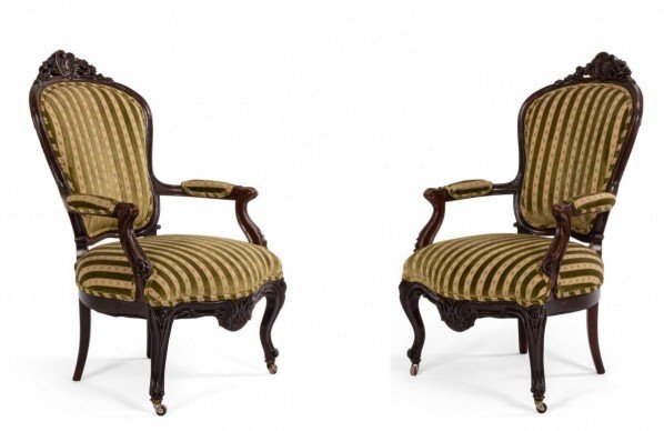 Style: French Materials & Techniques: Fabric, upholstered, wood Category: Seating Good; Wear consistent with age and use