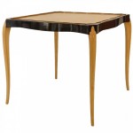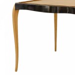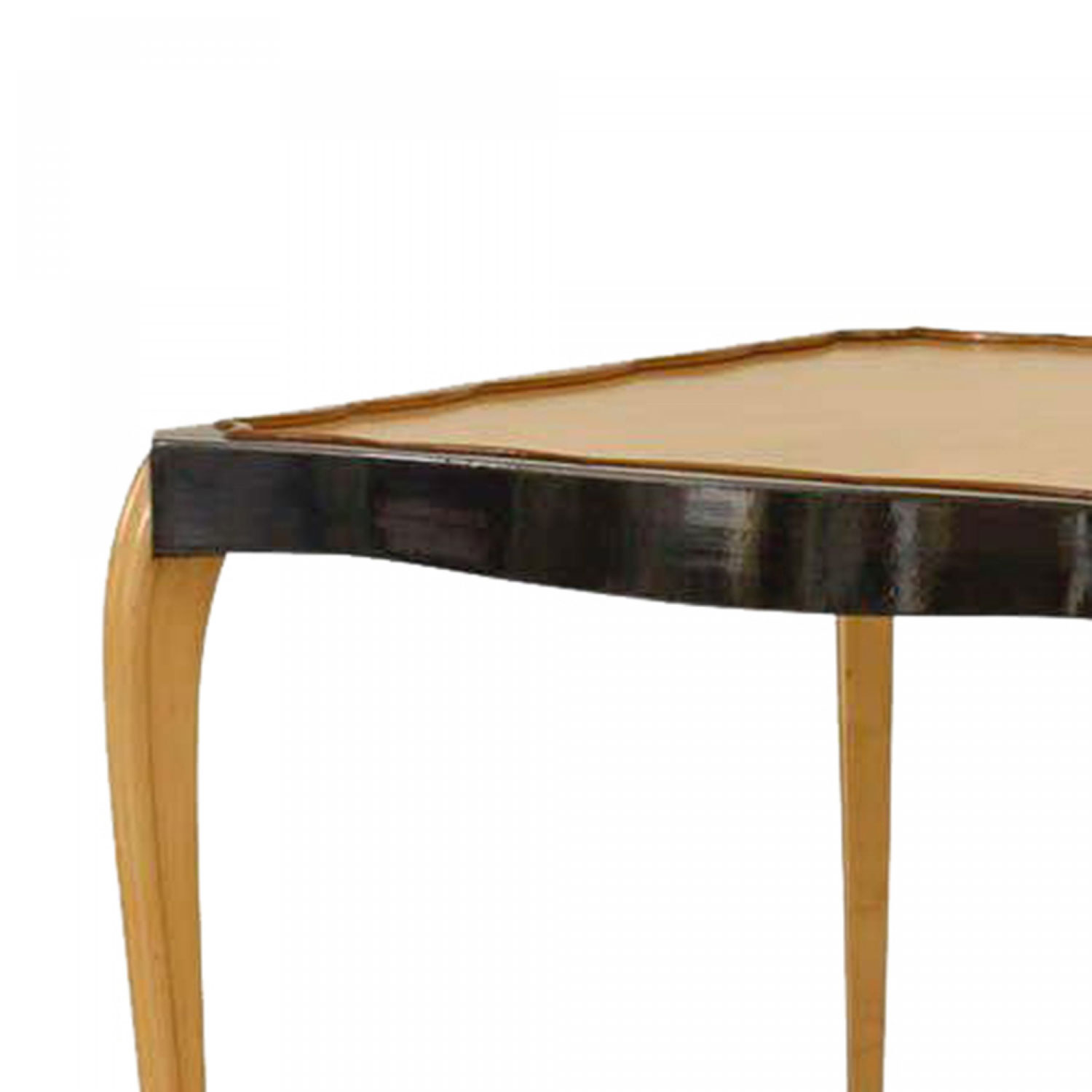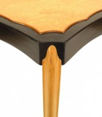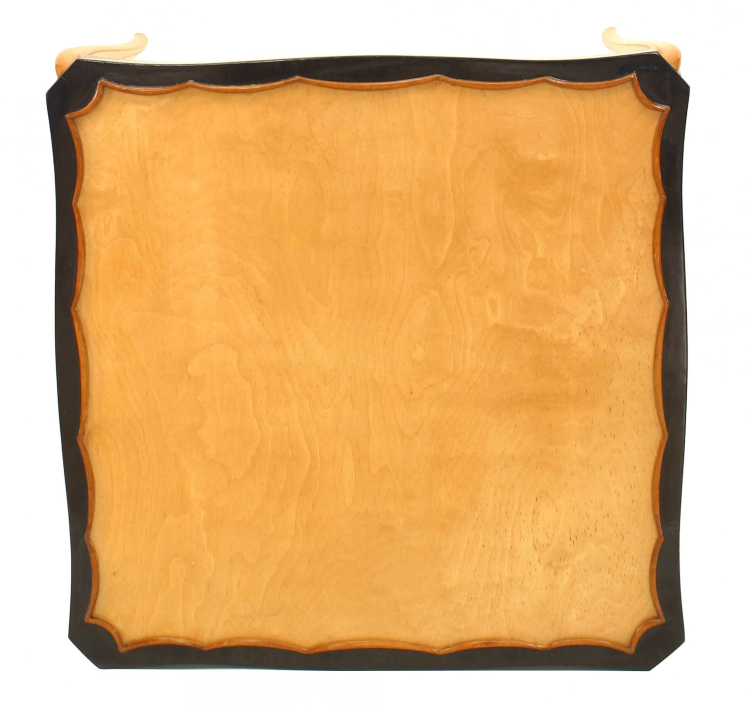French 1930s sycamore game table with an ebonized apron and scalloped top edge and supported on slight cabriole form legs. (attributed to MAURICE DUFRENE)