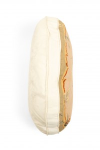 French Victorian oval shaped aubusson cushion with green border & beige background with floral design
