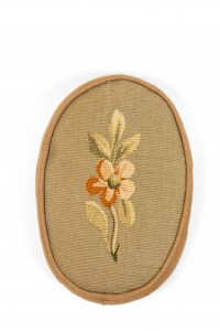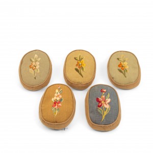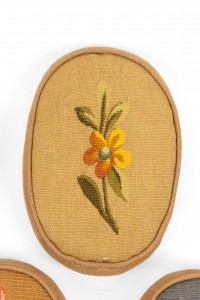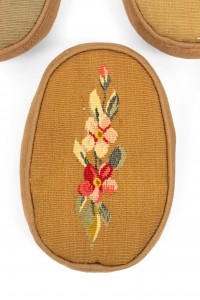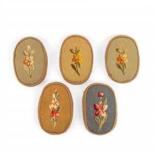 5 ASSORTED French Victorian Aubusson upholstered small oval cushions with multicolored floral design. (PRICED EACH)