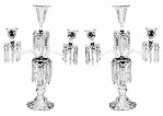 PAIR of French Victorian Baccarat crystal swirl design 2 arm candelabras with center vases. (PRICED AS PAIR)