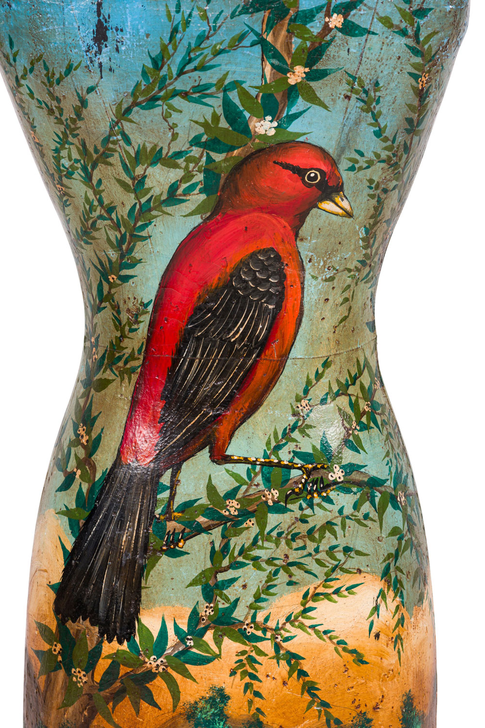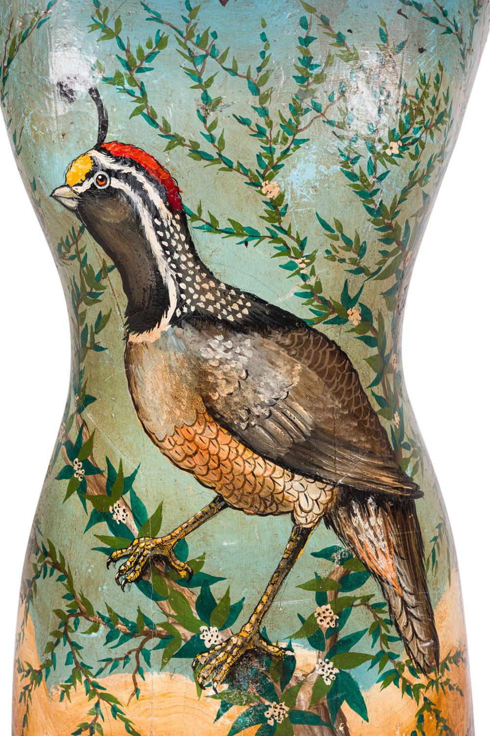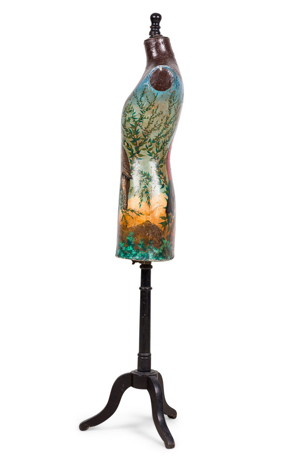 French Victorian style painted mannequin figure with bird design (20th Cent)