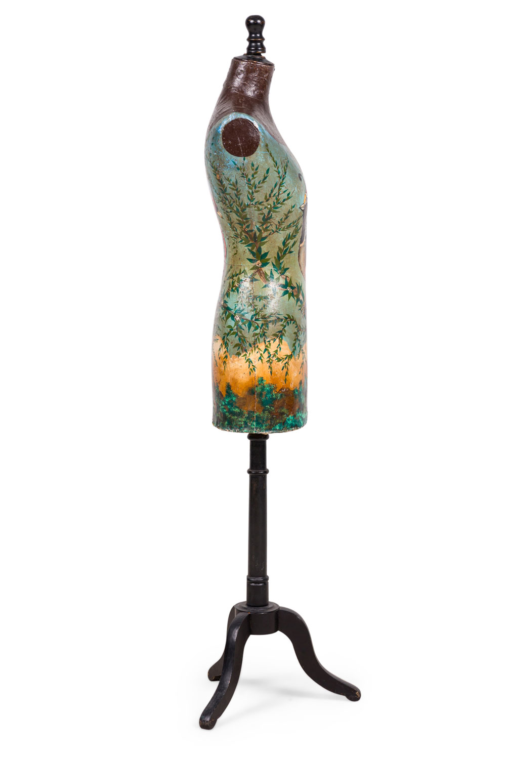 French Victorian style painted mannequin figure with bird design (20th Cent).