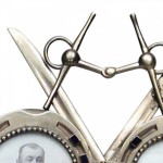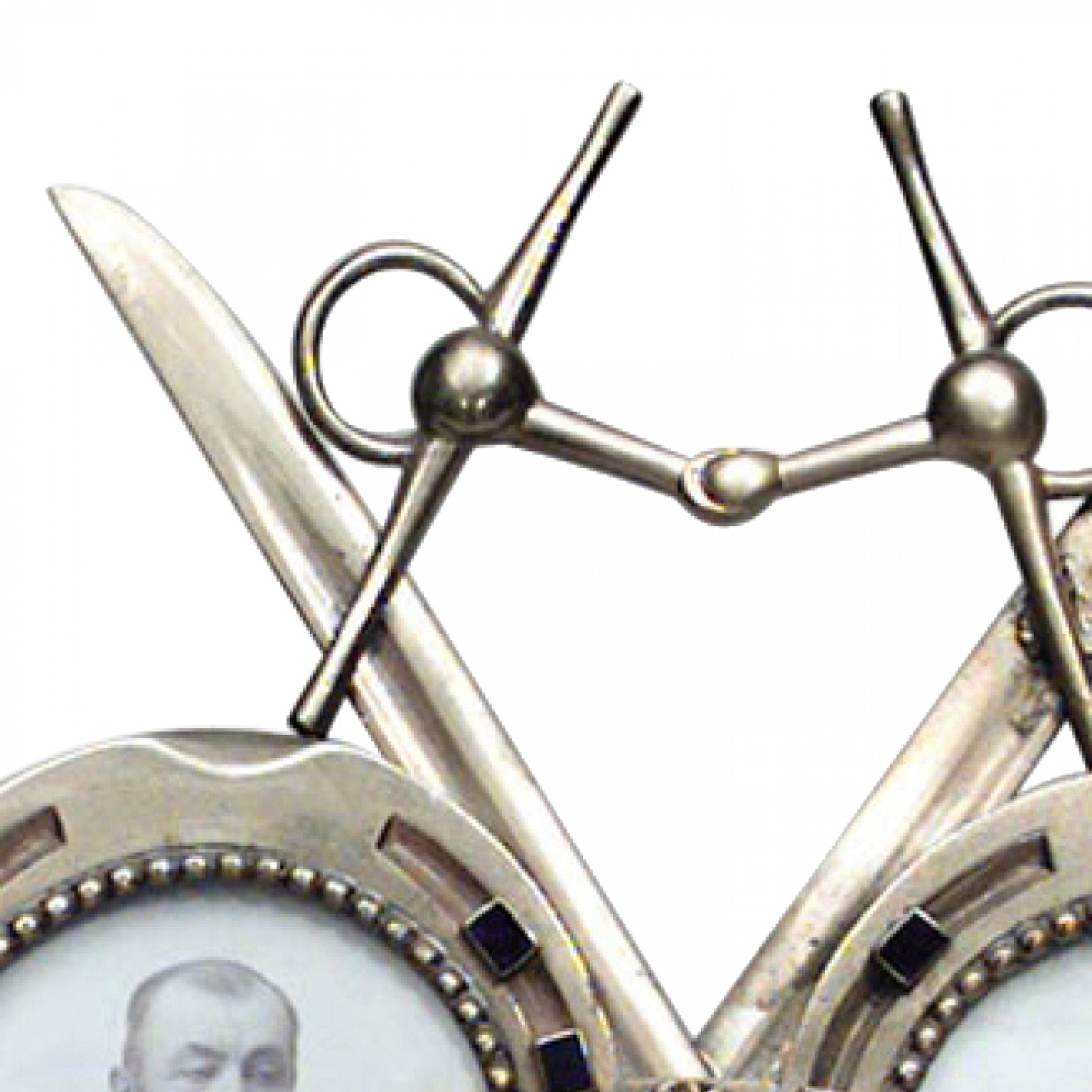 French Victorian enamel and brass easel picture frame of two horse shoes with crossed swords.