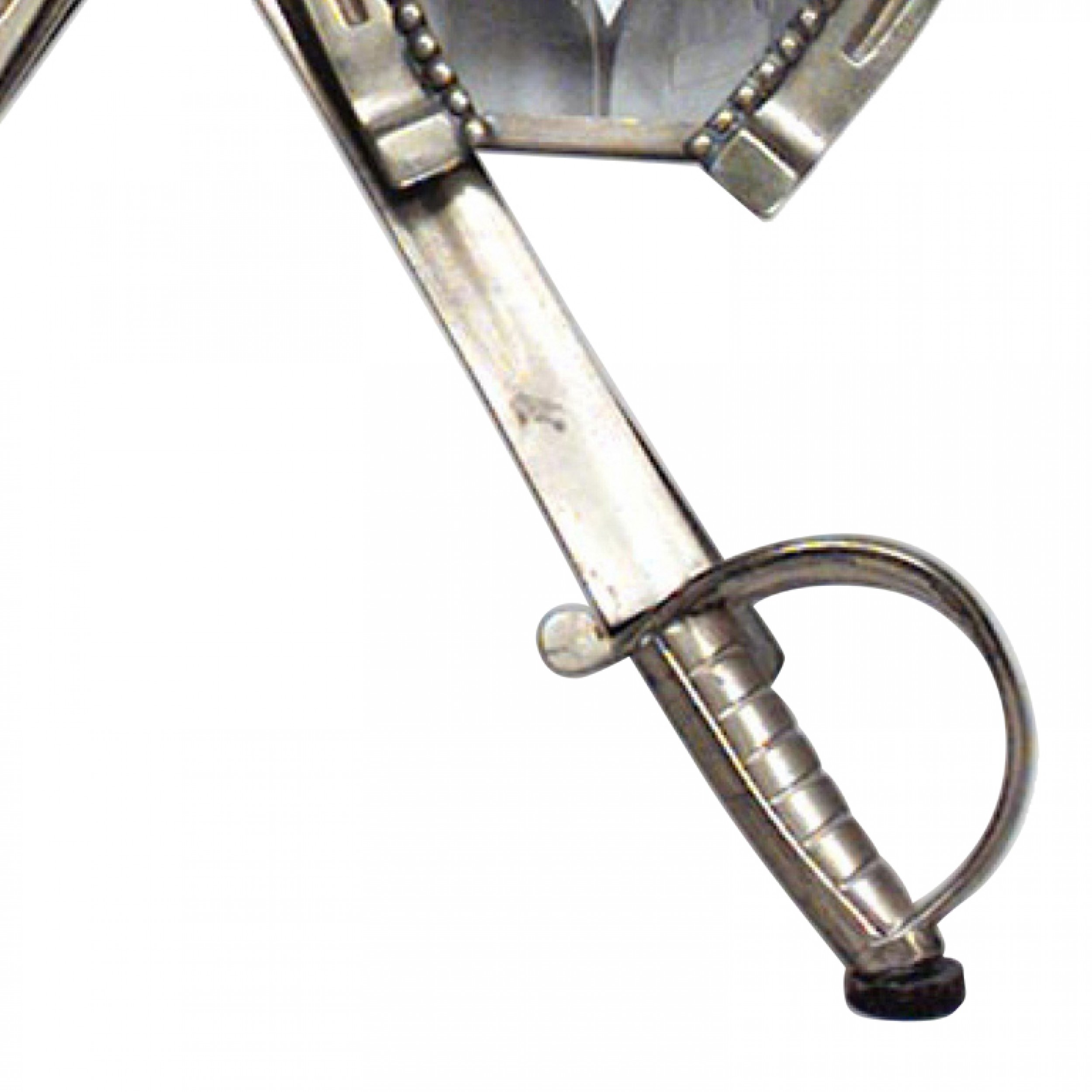 French Victorian enamel and brass easel picture frame of two horse shoes with crossed swords..