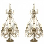 PAIR of French Victorian fluted bronze and crystal 4 arm candelabra with finial top and beaded crystal swags. (PRICED AS PAIR)